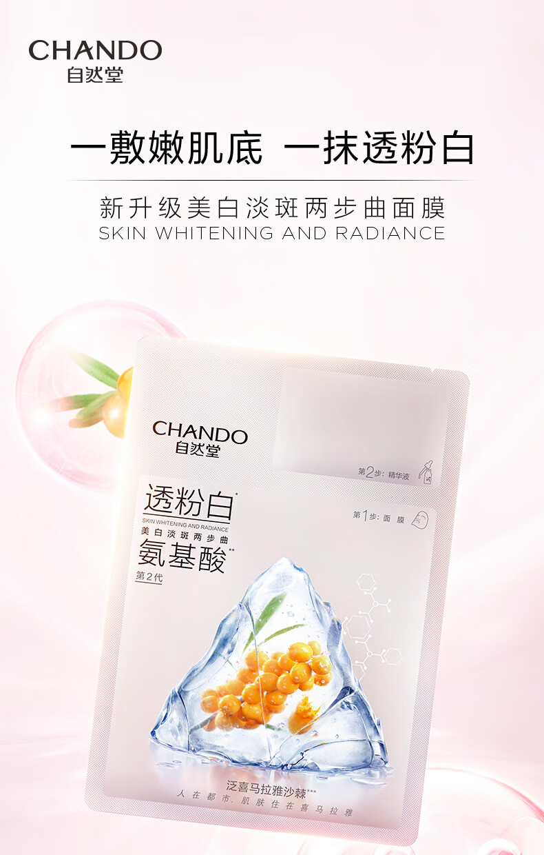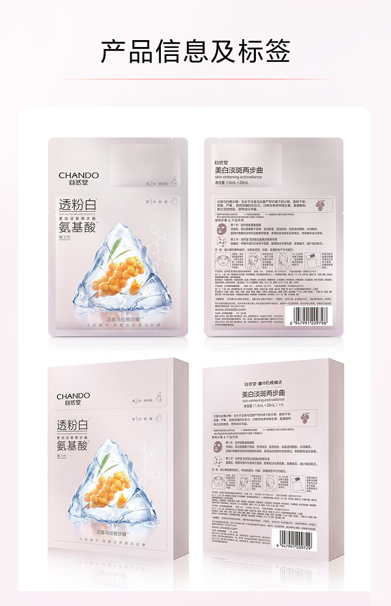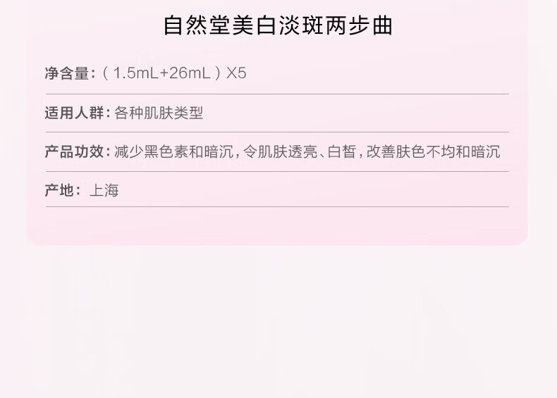 商品名称:自然堂美白淡斑两步曲面膜(1.5ml+26ml)*5片 (单位:盒) 白色