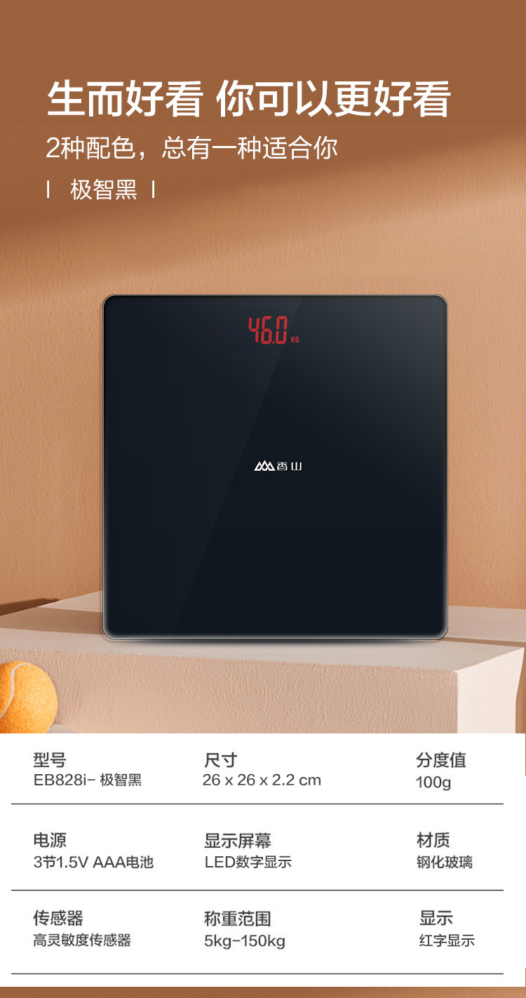 商品名称:香山 EB828i 电子体重秤 极智黑