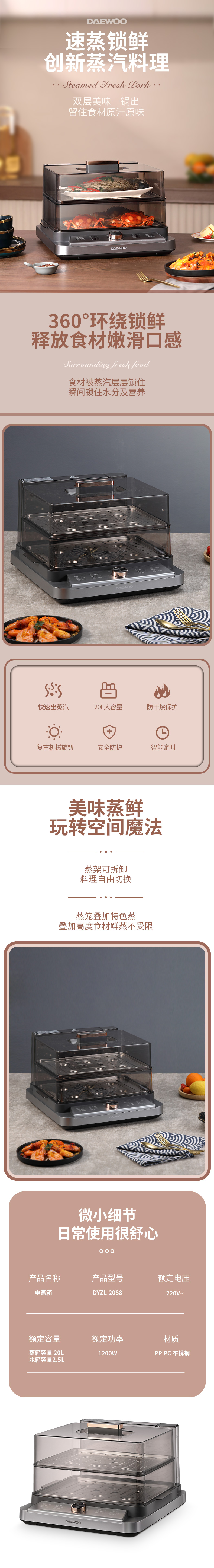 商品名称:大宇可视20L电蒸锅DYZL-2088 单位(台) 耀岩灰