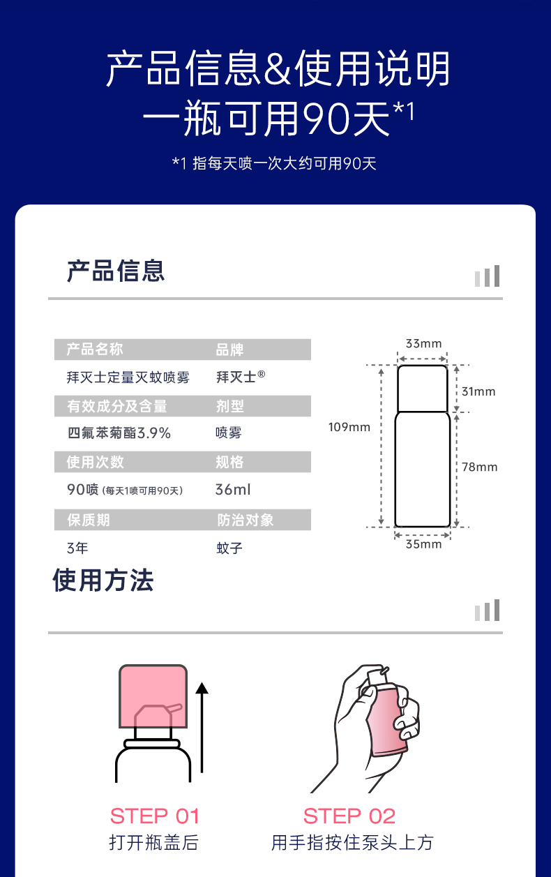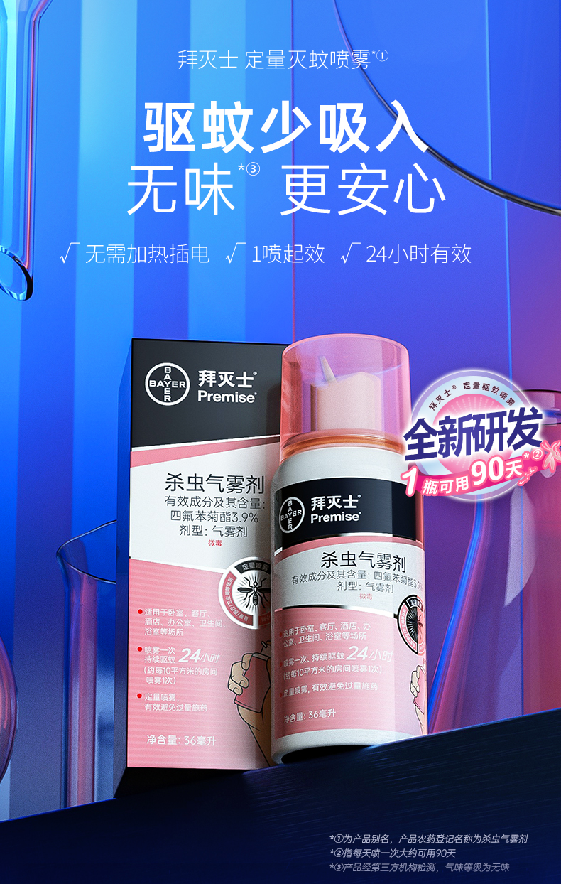 商品名称:拜灭士拜耳杀虫气雾剂驱蚊液定量灭蚊喷雾家用36ml(单位:瓶) 粉色 拜灭士杀虫气雾剂36ml