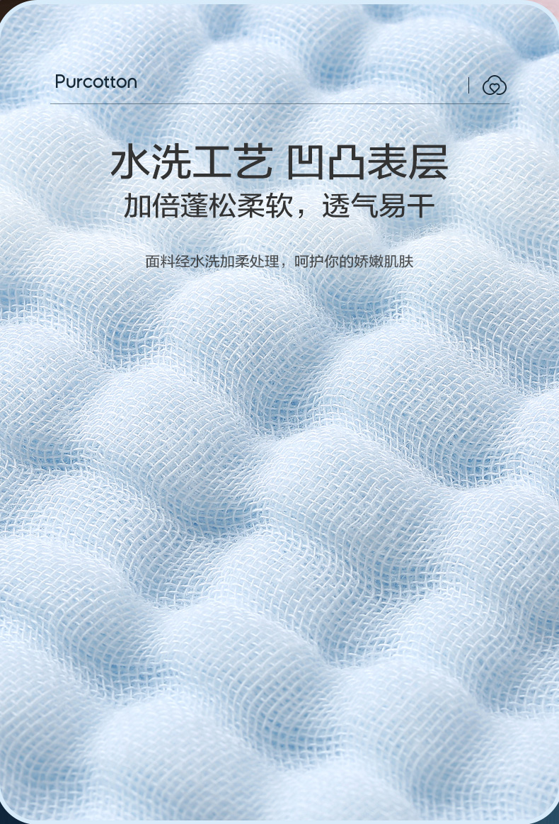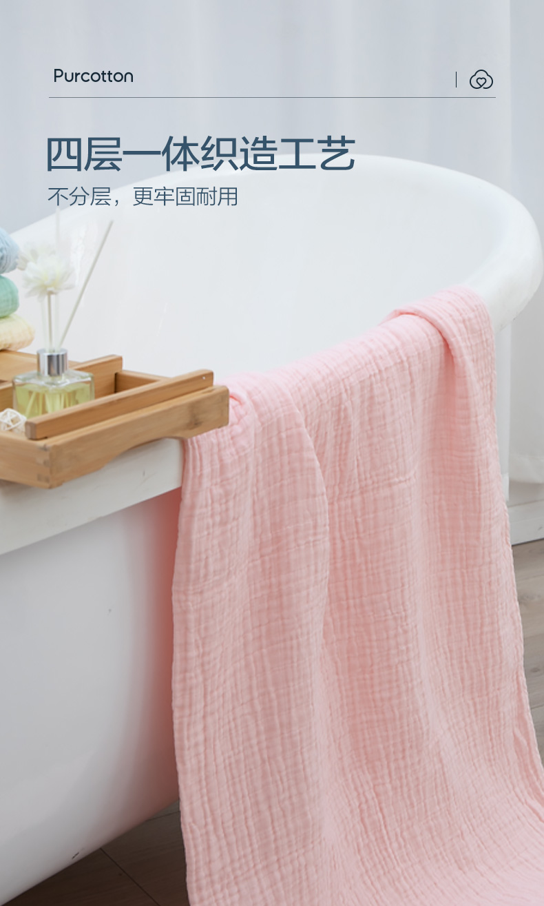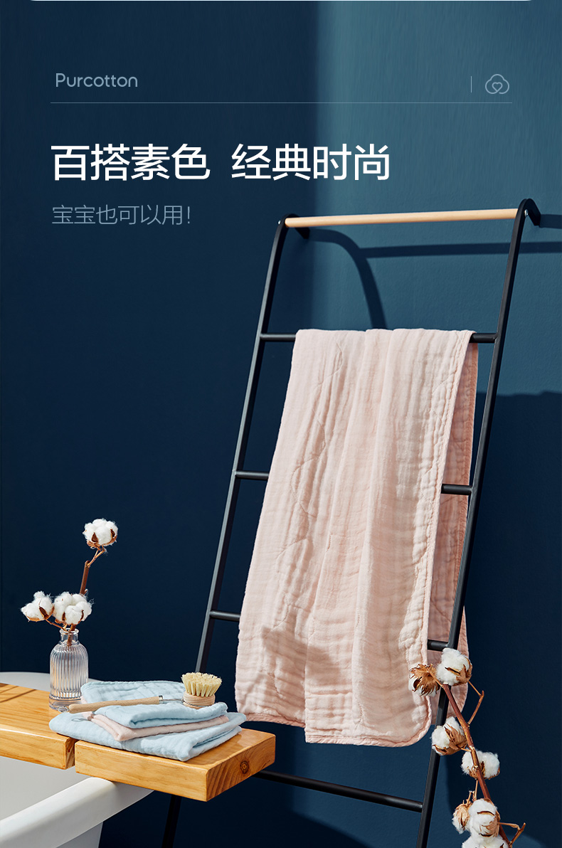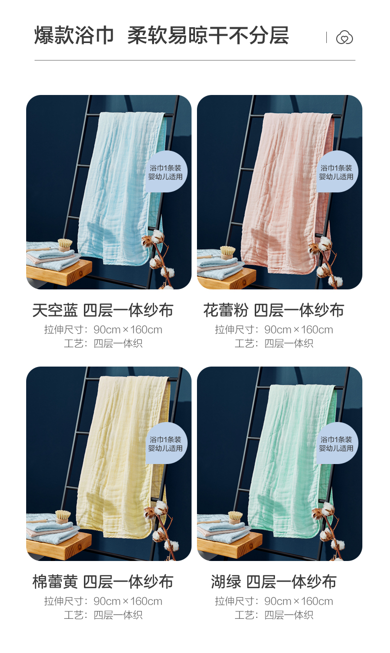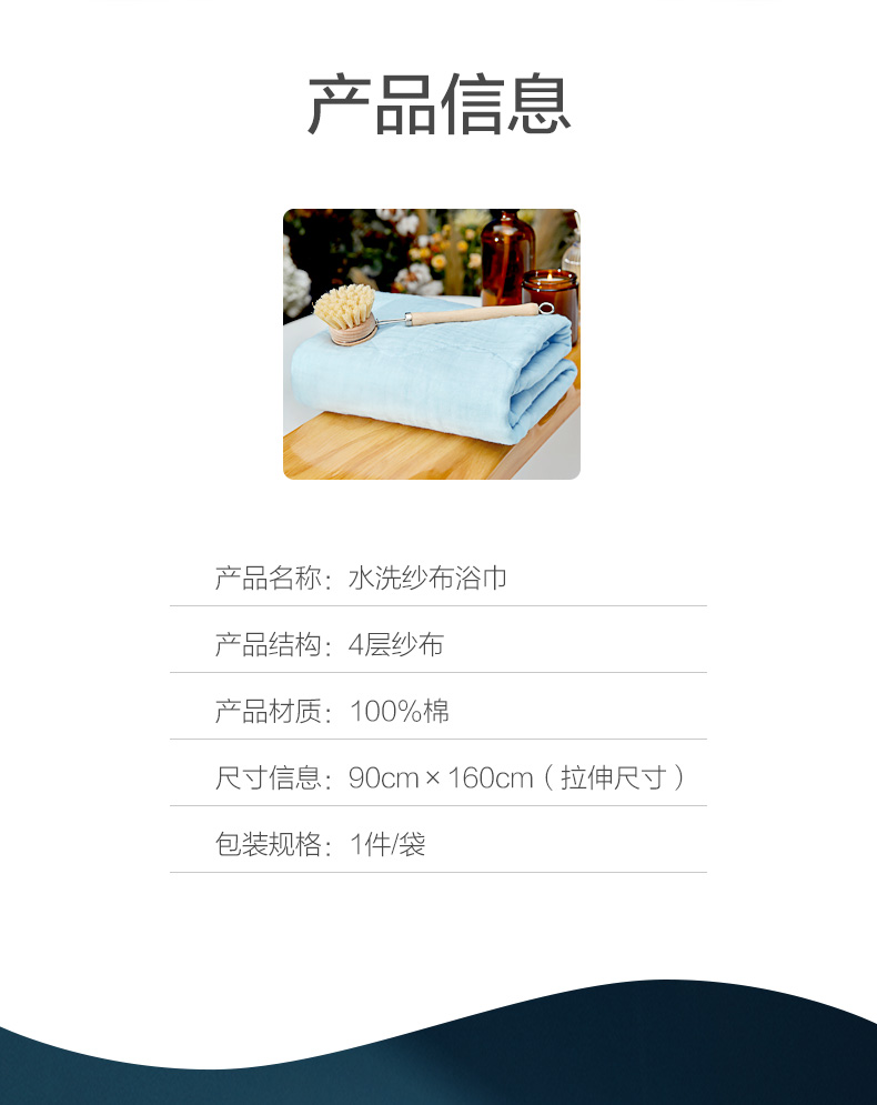 商品名称:全棉时代4层水洗纱布浴巾 90CM×160CM 天空蓝 1条 蓝色