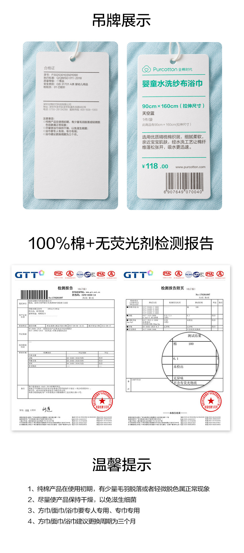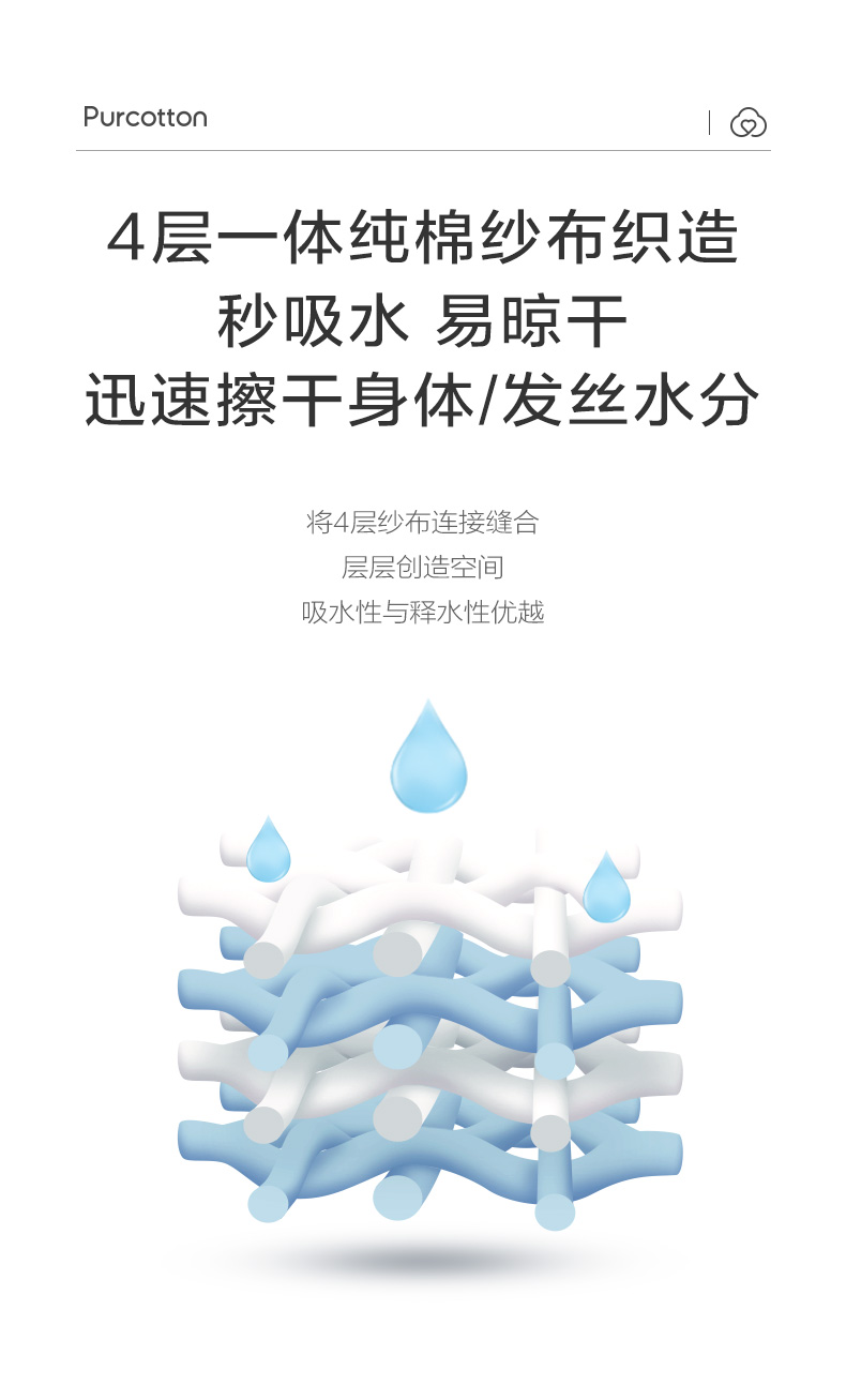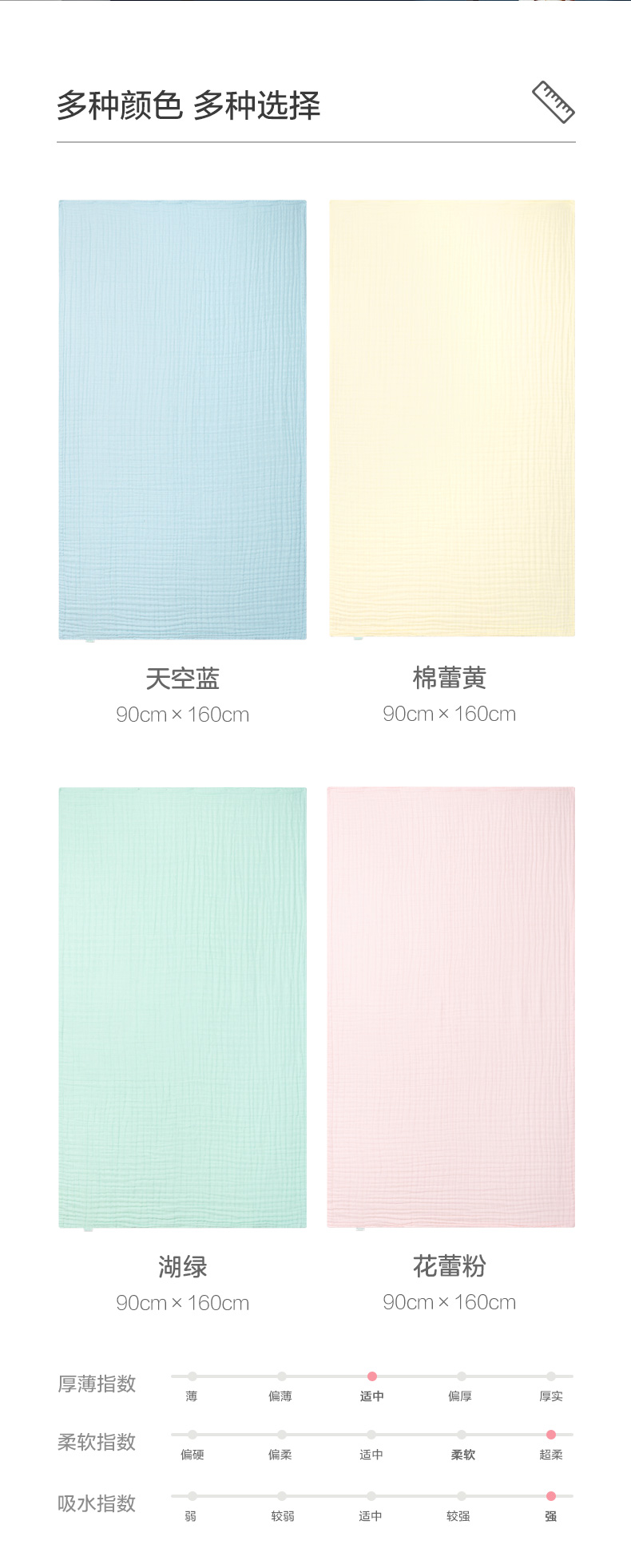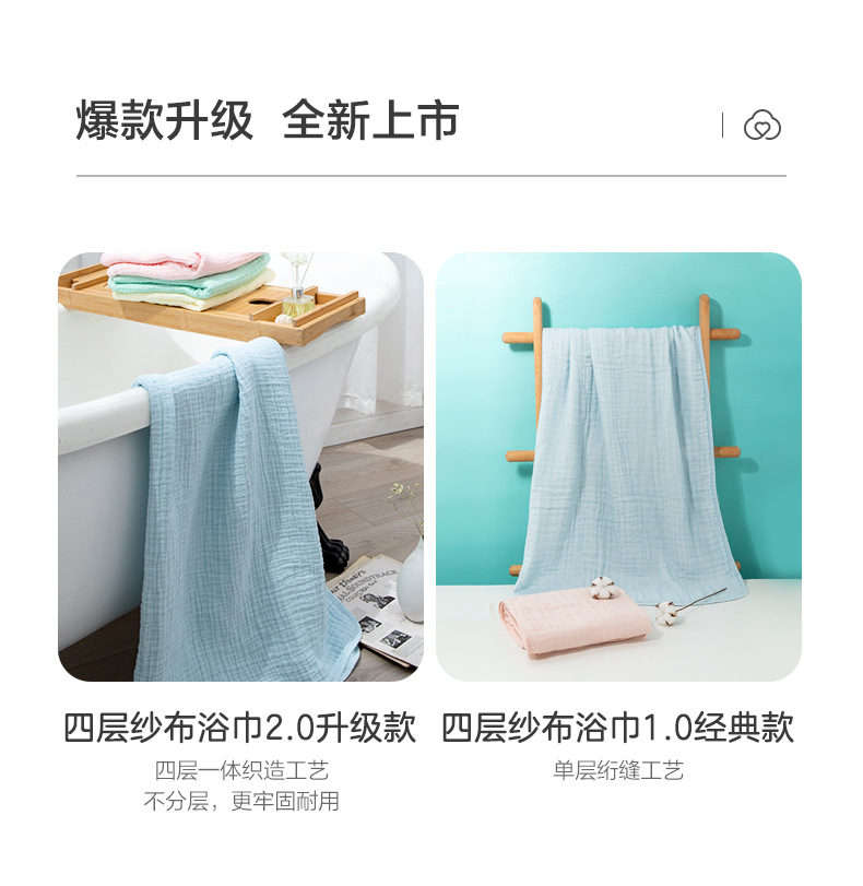 商品名称:全棉时代4层水洗纱布浴巾 90CM×160CM 天空蓝 1条 蓝色