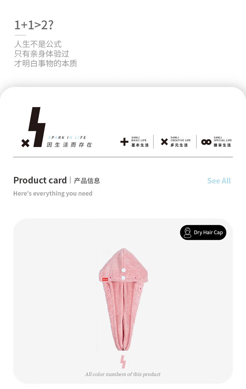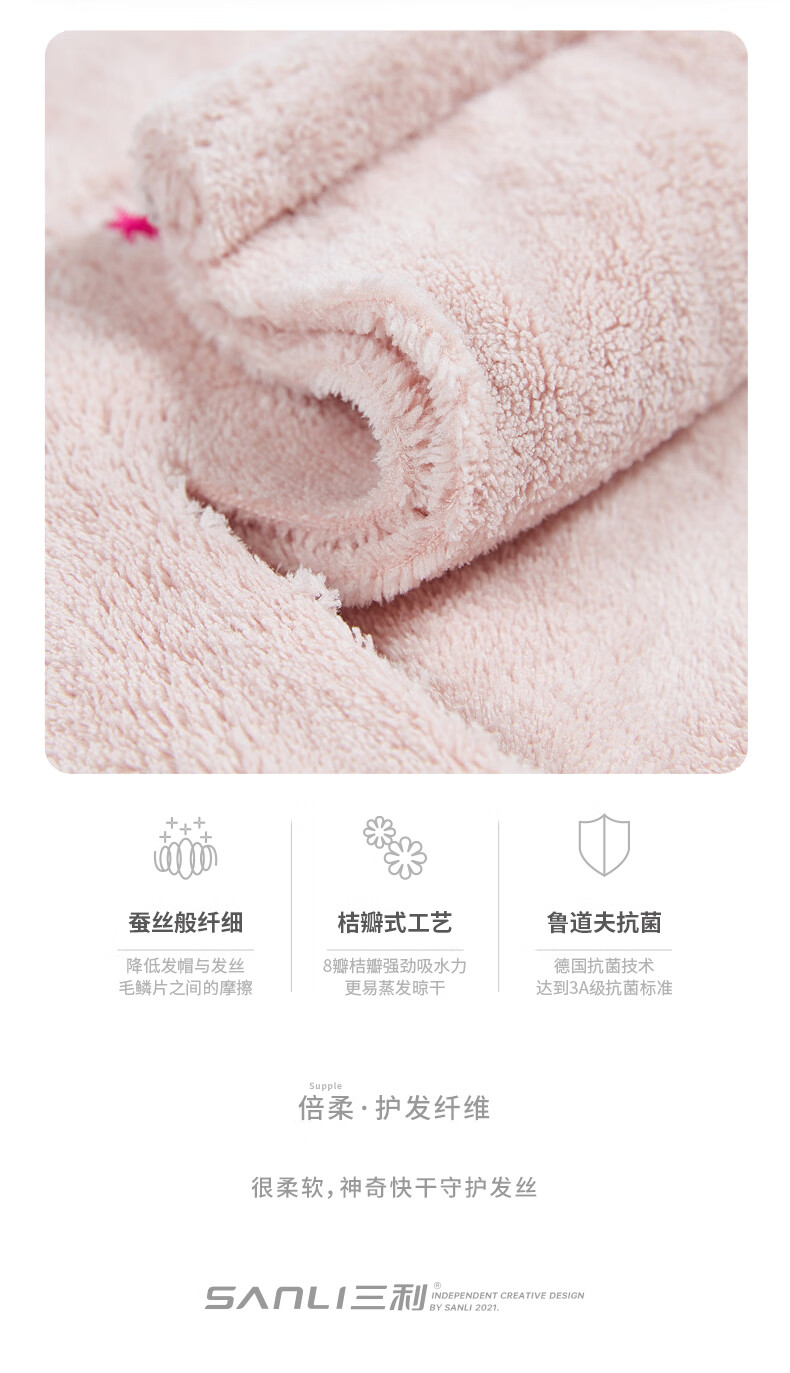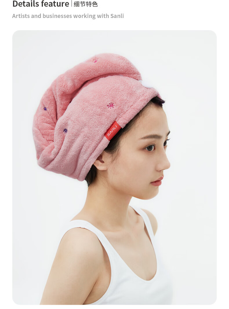 商品名称:三利双层加厚干发帽 H072(袋装) 粉色