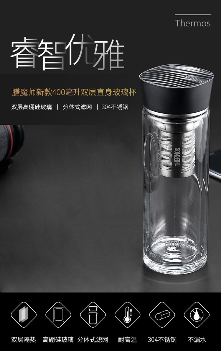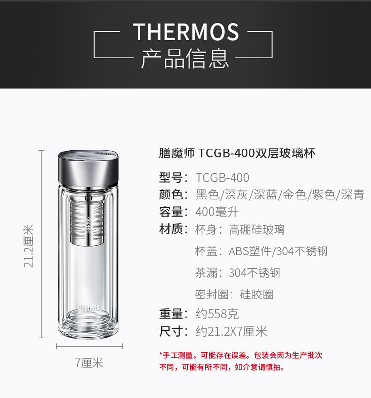商品名称:膳魔师(THERMOS)400ml双层玻璃杯TCGB-400(单位:个) 黑色