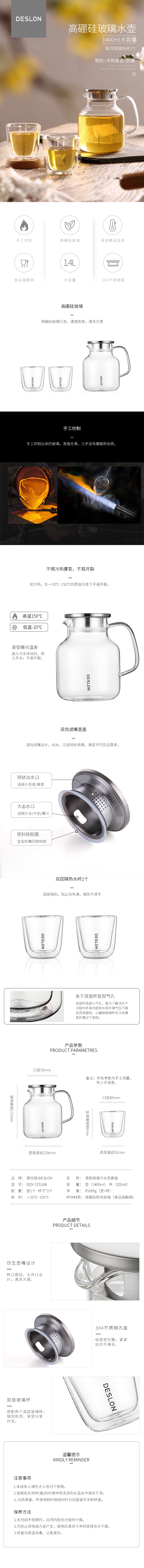 商品名称:德世朗(DESLON)清韵玻璃冷水壶套装DQY-TZ016B(单位:套) 透明