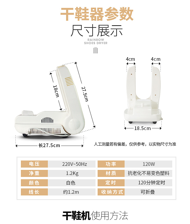 商品名称:彩虹电热暖风干鞋机481-2(单位:个) 白色