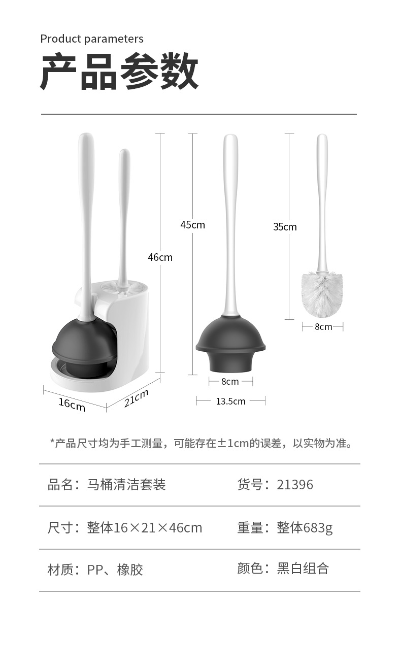 商品名称:世家 21396马桶刷清洁套装16*21*46cm马桶刷+多功能皮吸疏通器 马桶清洁套装(单位:套) 白色