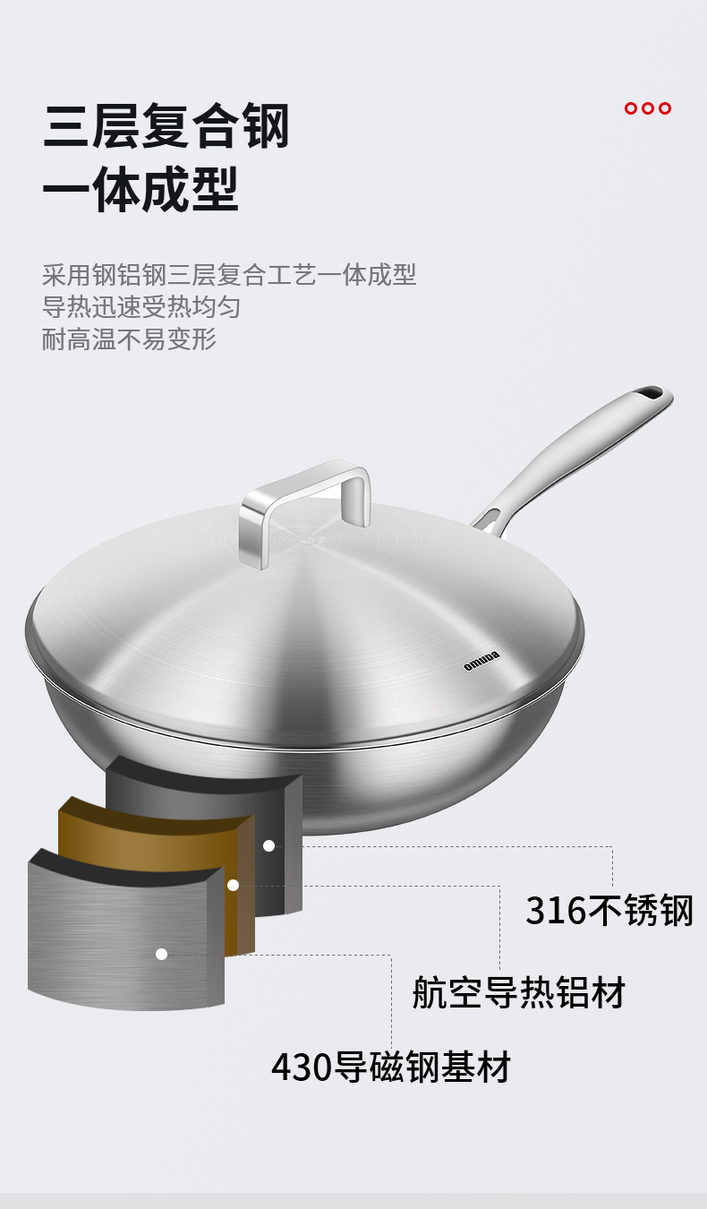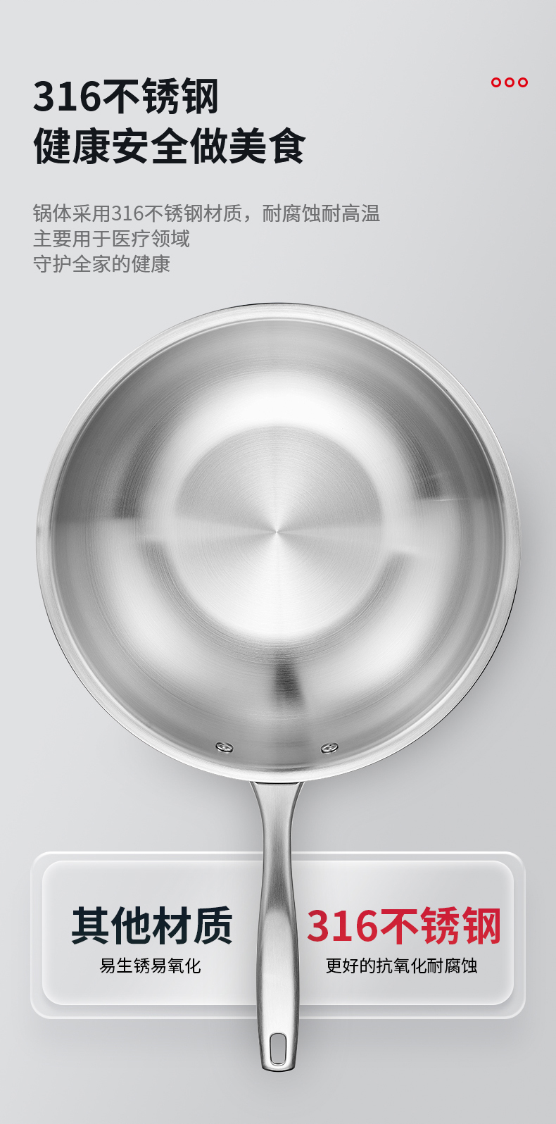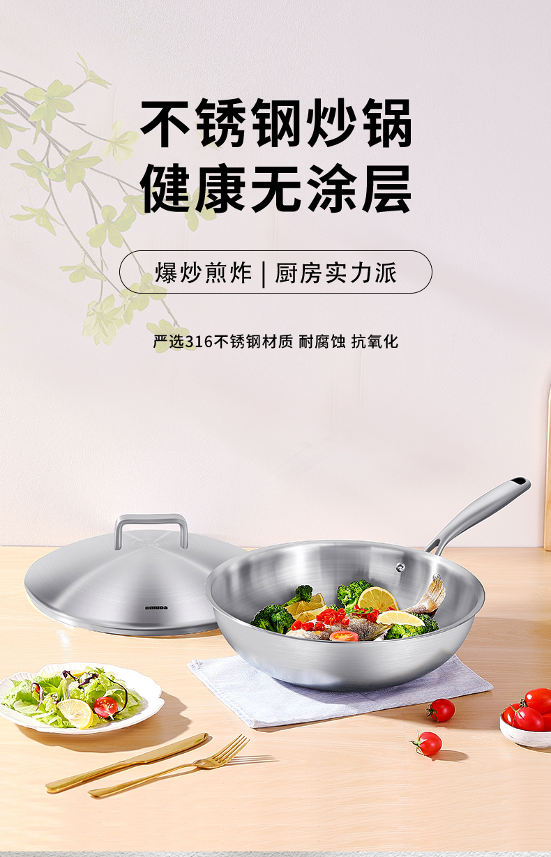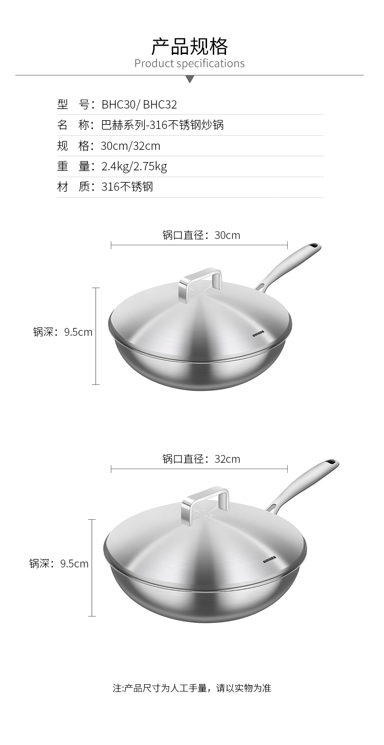 商品名称:欧美达 巴赫系列-316不锈钢 炒锅 32cm BHC32(个) 不锈钢色