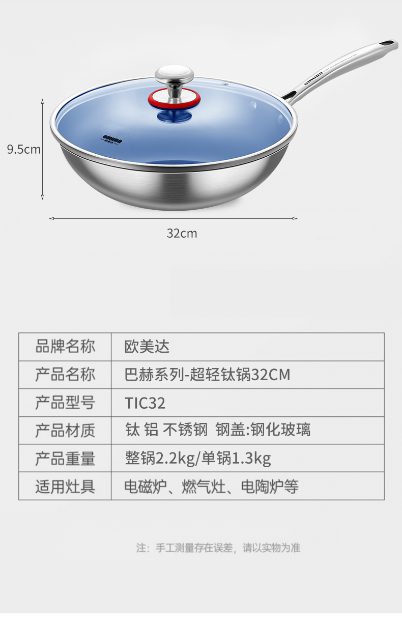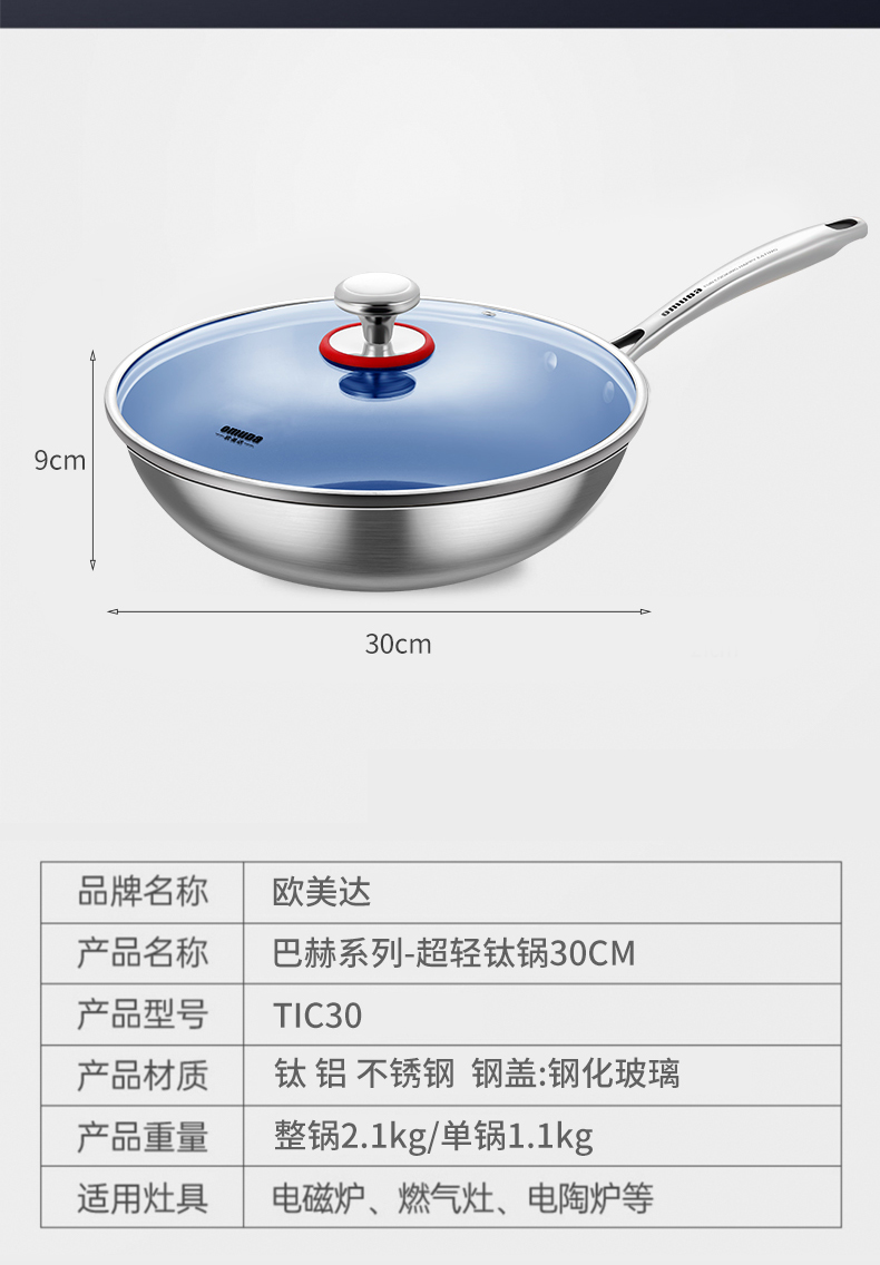 商品名称:欧美达 巴赫系列-超轻钛锅30cm TIC30 (个) 不锈钢色