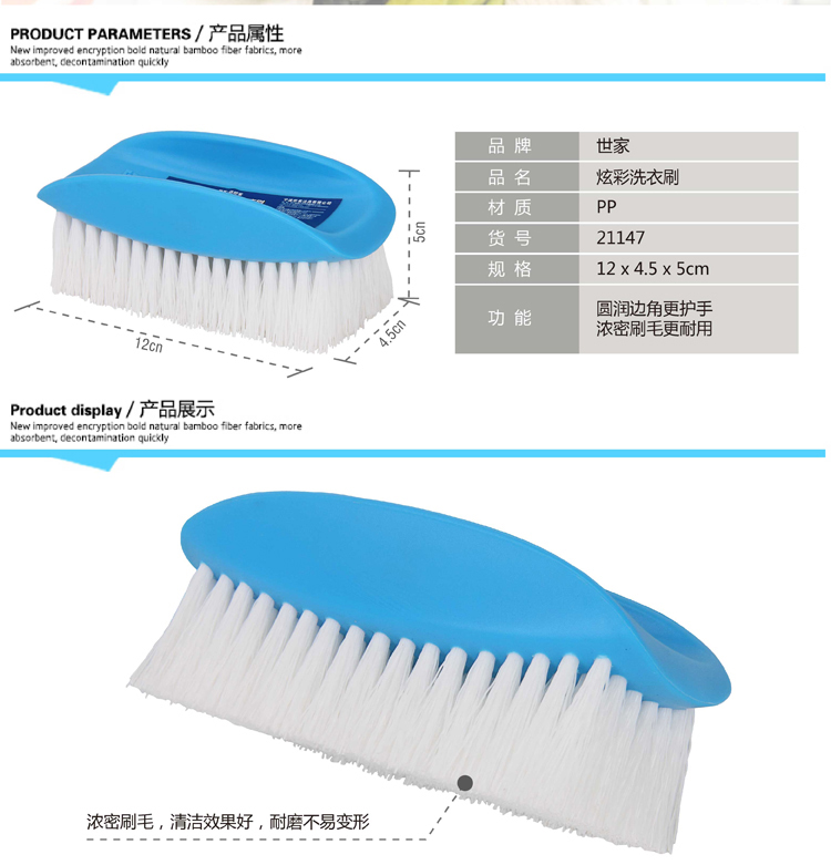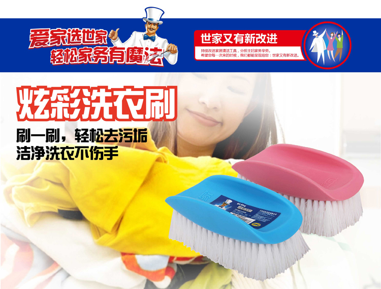 商品名称:世家 21147洗衣刷12*4.5*5cm硬毛刷丝 蓝/粉颜色混色 炫彩洗衣刷1个装(单位:个) 白色