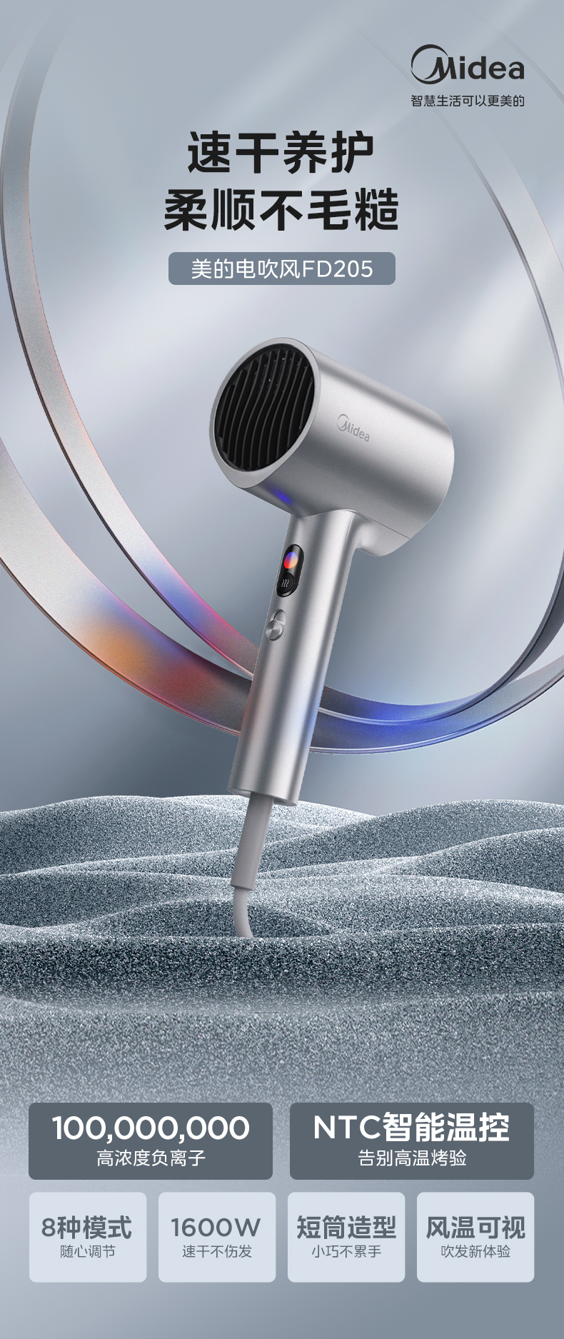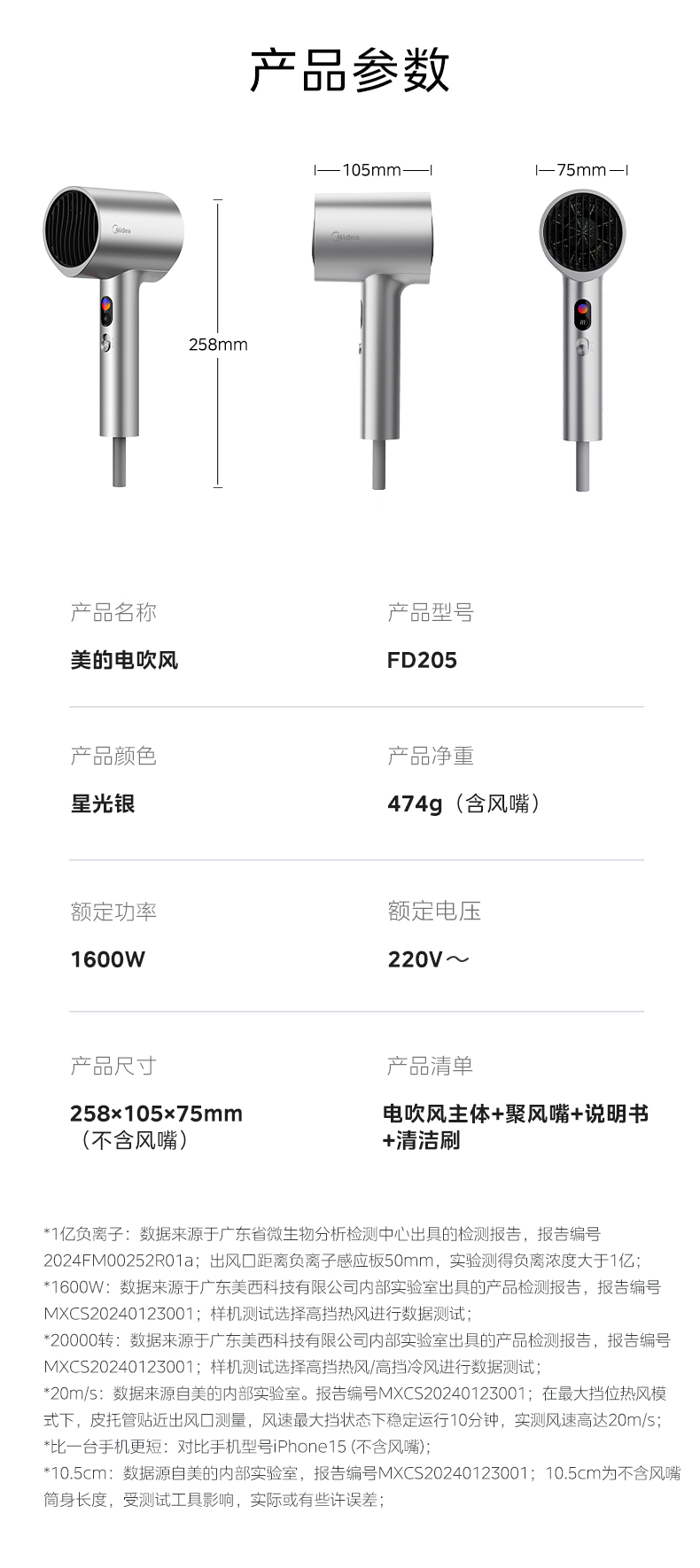 商品名称:美的(Midea) FD205 1600W 亿级负离子电吹风 星光银(单位:个)