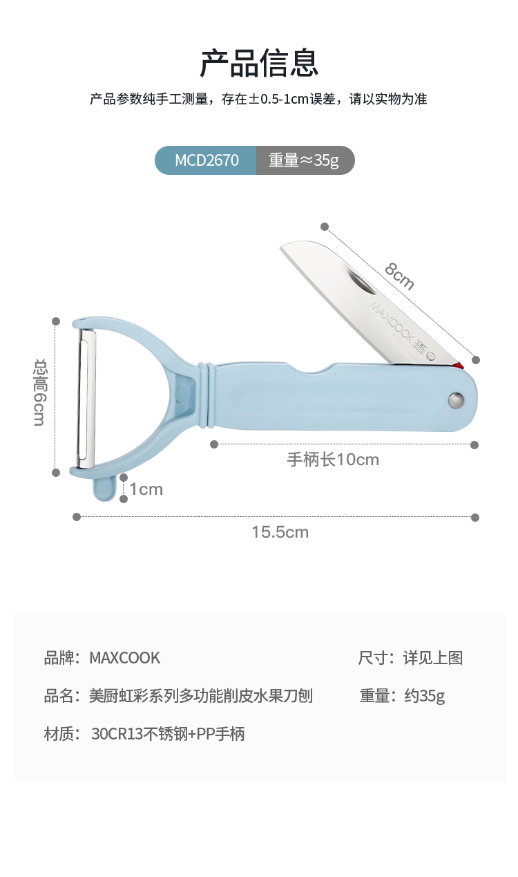 商品名称:美厨削皮刀削皮器 不锈钢刨刀瓜刨刮皮刀 蔬菜水果刀 MCD2670(单位:把)