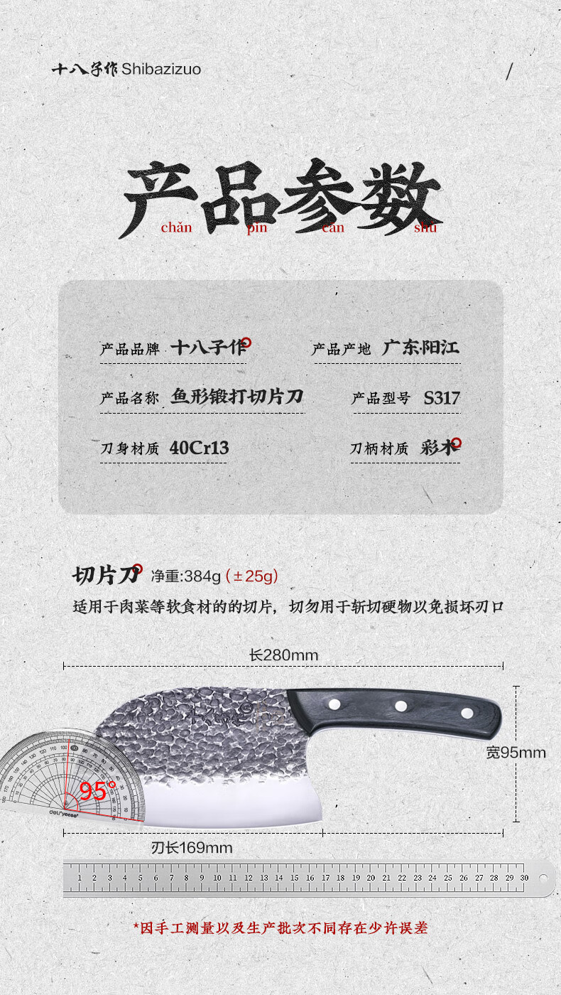 商品名称:十八子作 S317 280*95mm 鱼形万用刀切片刀 不锈钢色(单位:把)