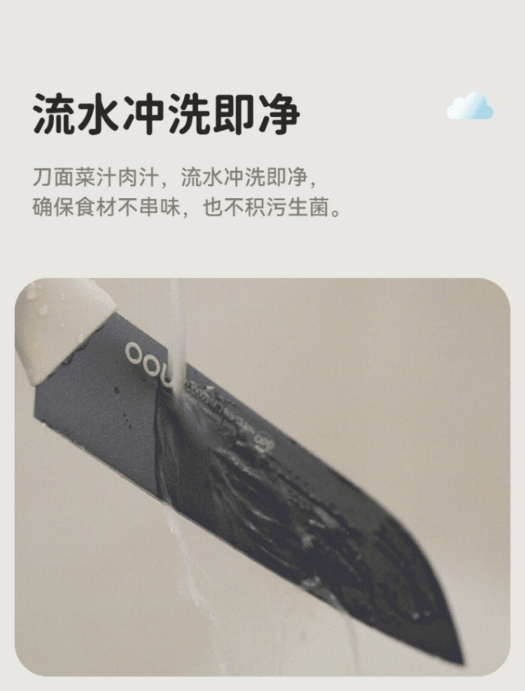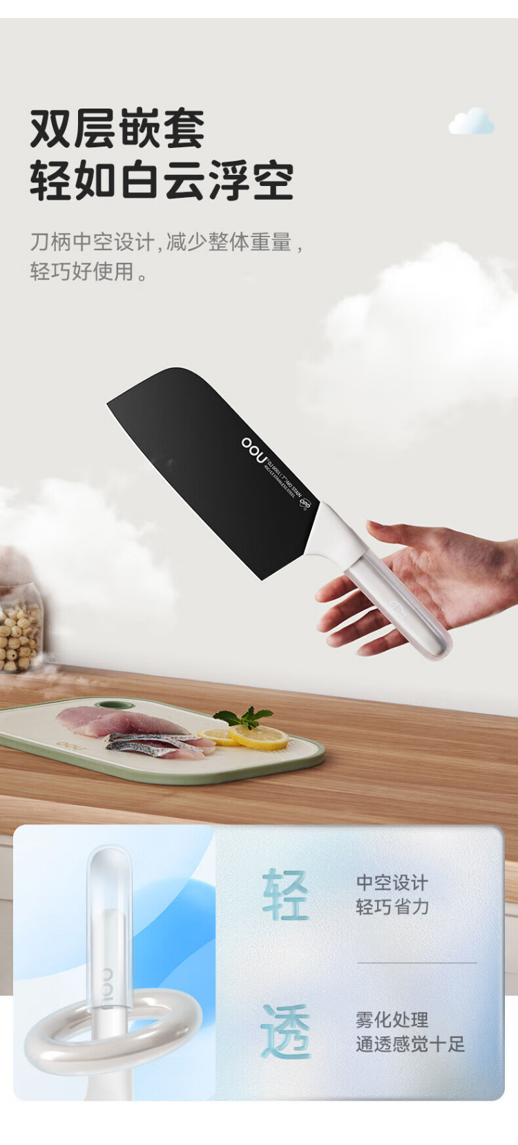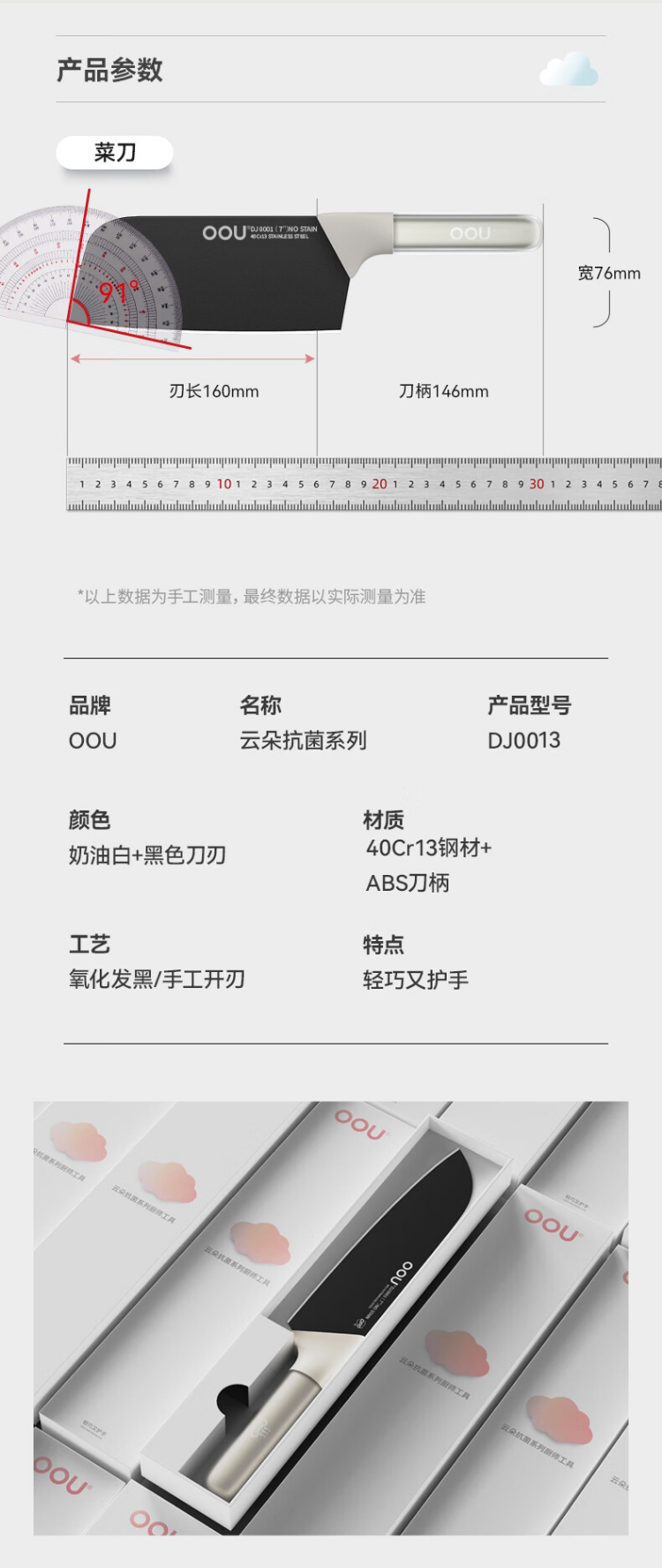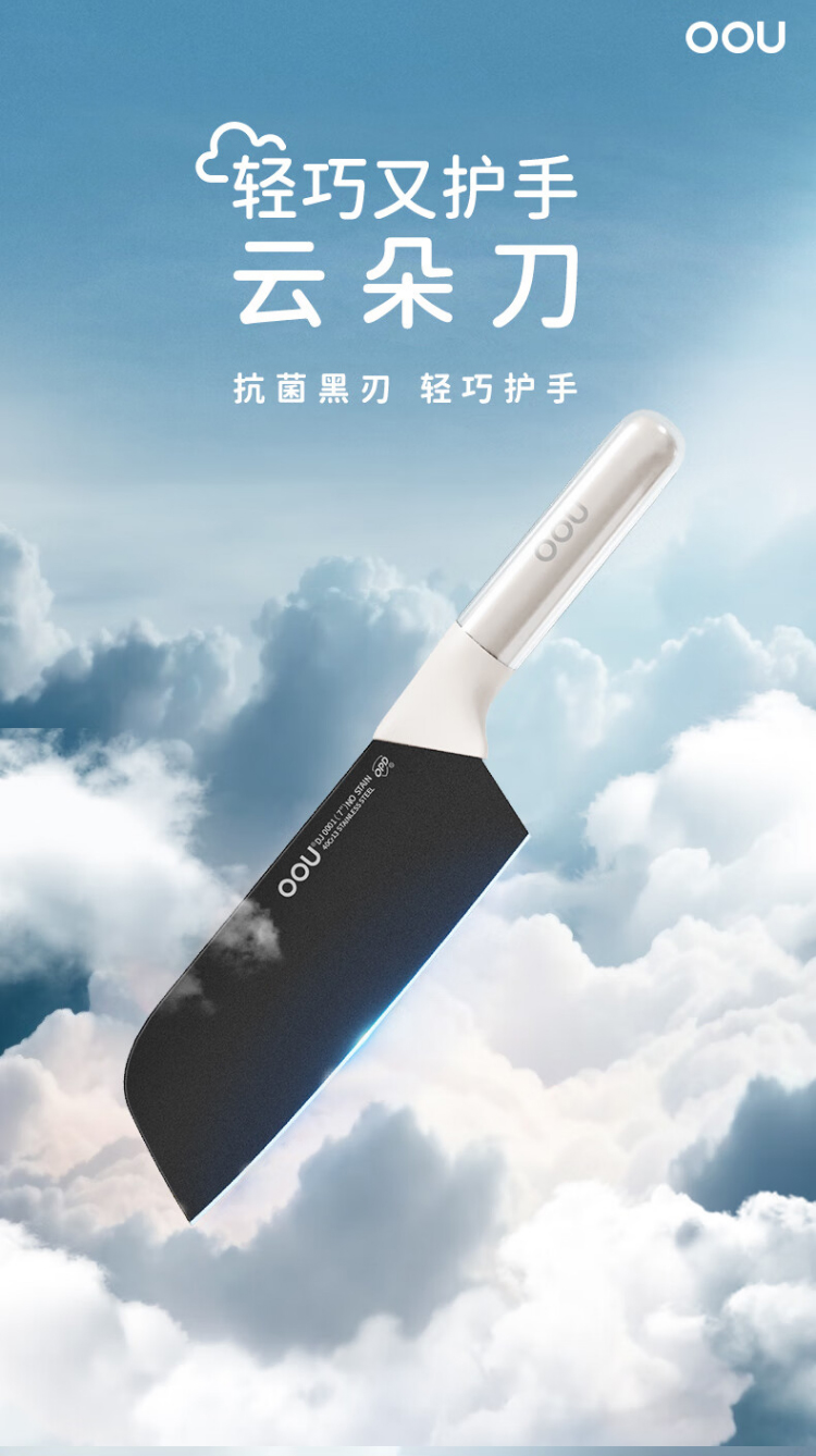 商品名称:OOU 云朵系列菜刀 刃长160mm、刀柄146mm、宽76mm 云朵菜刀 黑色(单位:把)