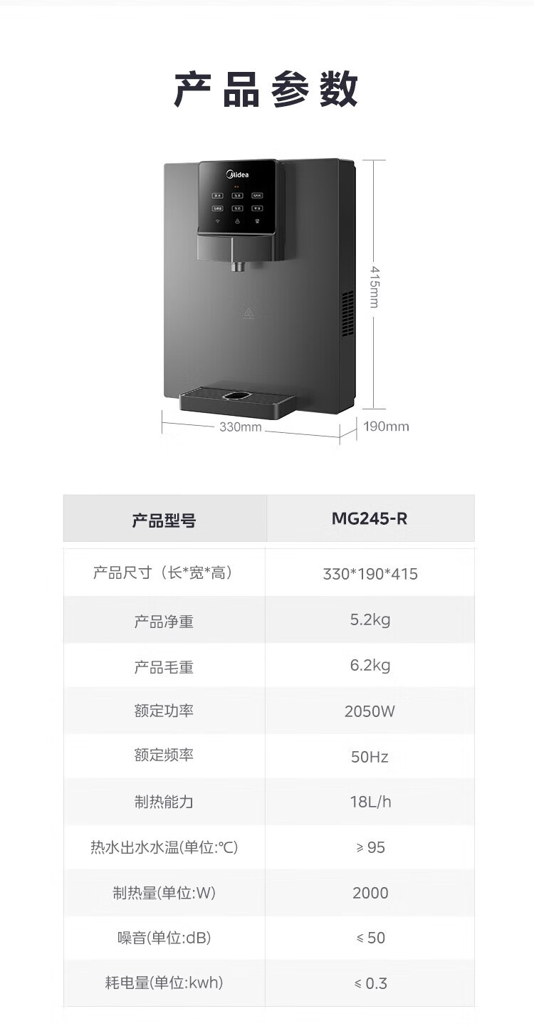 商品名称:美的(Midea)家用净水器伴侣管线机秒速加热直饮一体多段温控直饮水机MG245-R 台 黑色