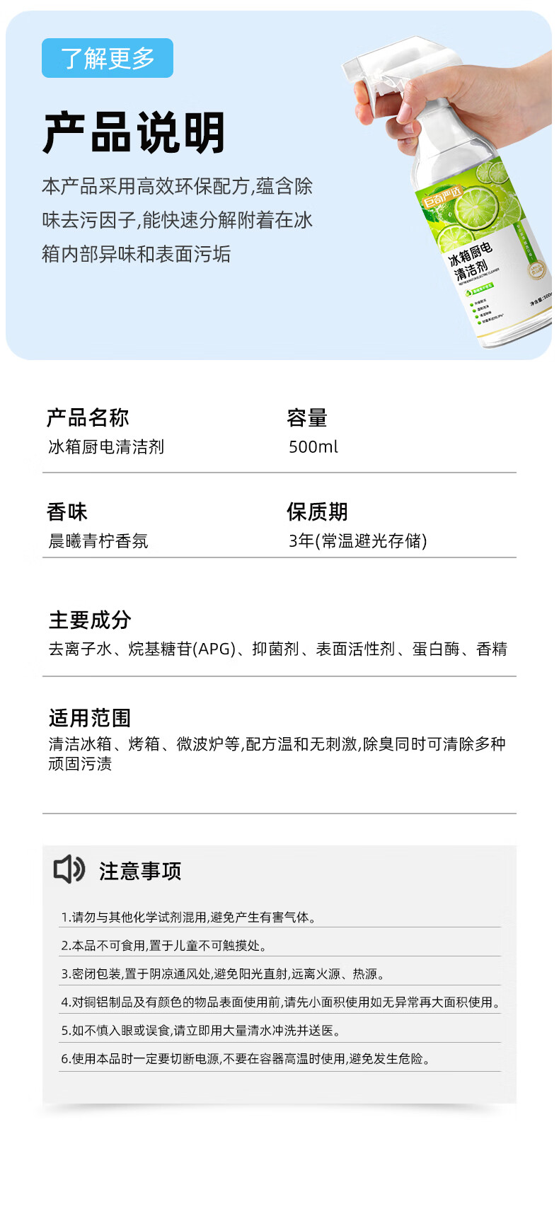 商品名称:巨奇冰箱清洁剂(新老包装随机发货)(单位:瓶) 500ml*2瓶