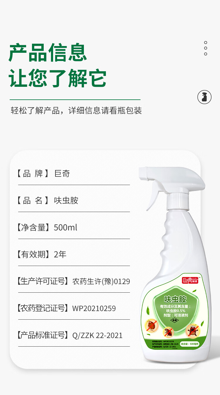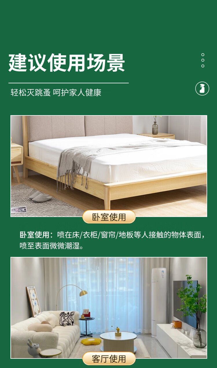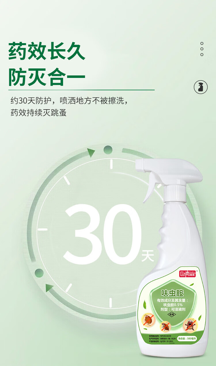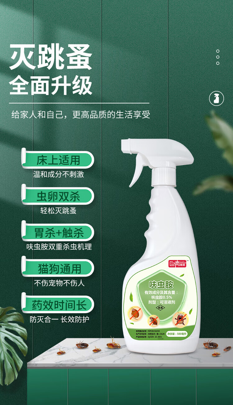 商品名称:巨奇(JUQI)床虱跳蚤专用杀虫剂(新老包装随机发货)(单位:瓶) 绿色500ml*1瓶