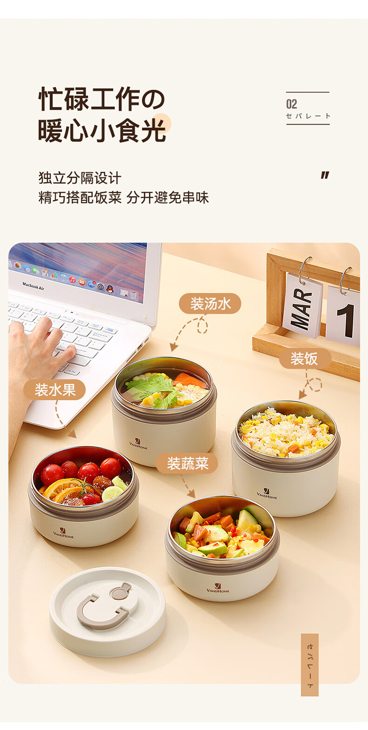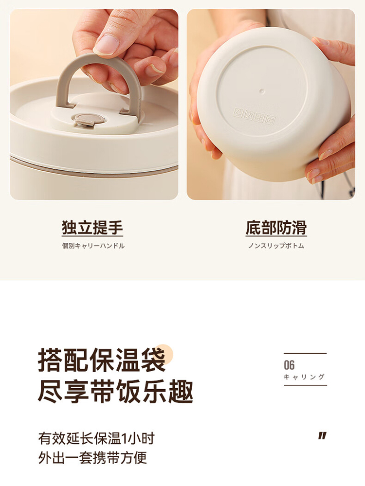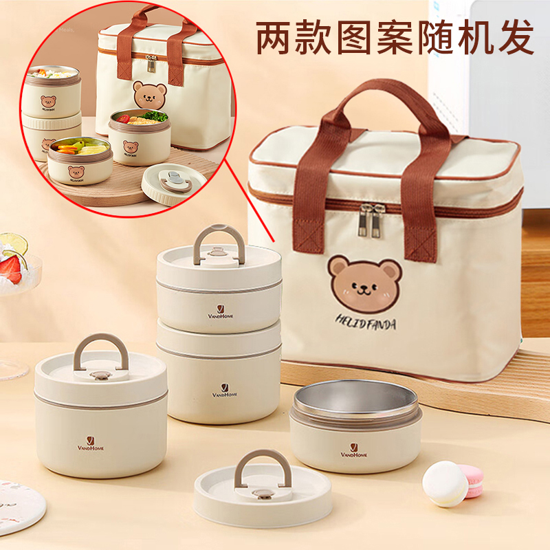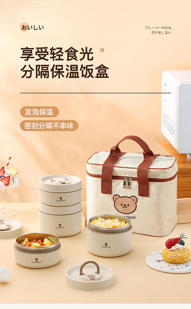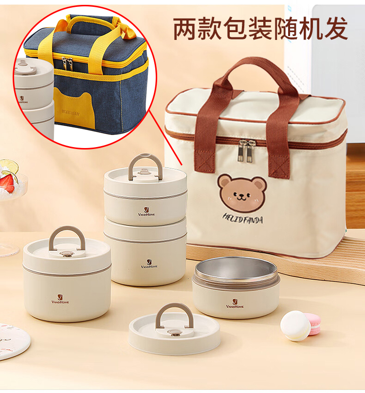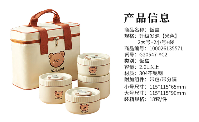 商品名称:沃德百惠(WORTHBUY) G20547-YC2 饭盒400ml*2,600ml*2,保温袋*1 手提不锈钢分格饭盒 米色(单位:套)
