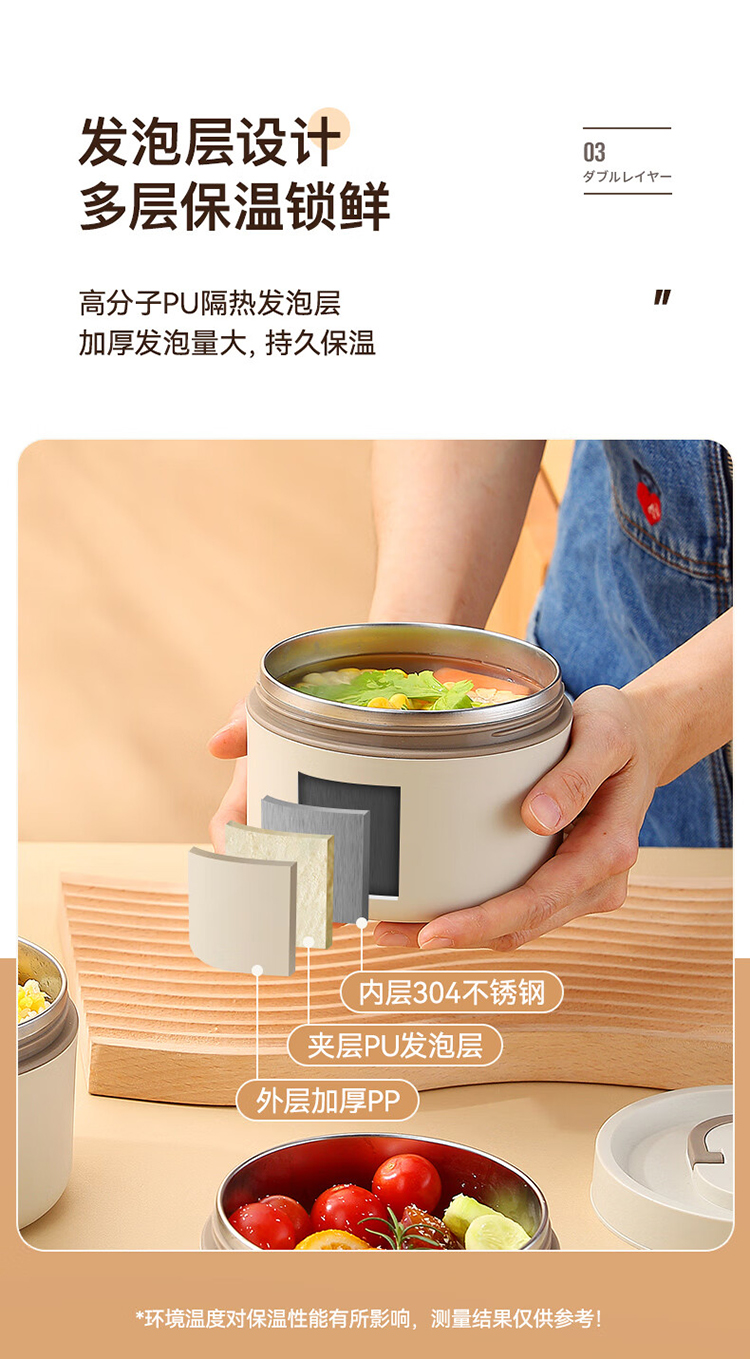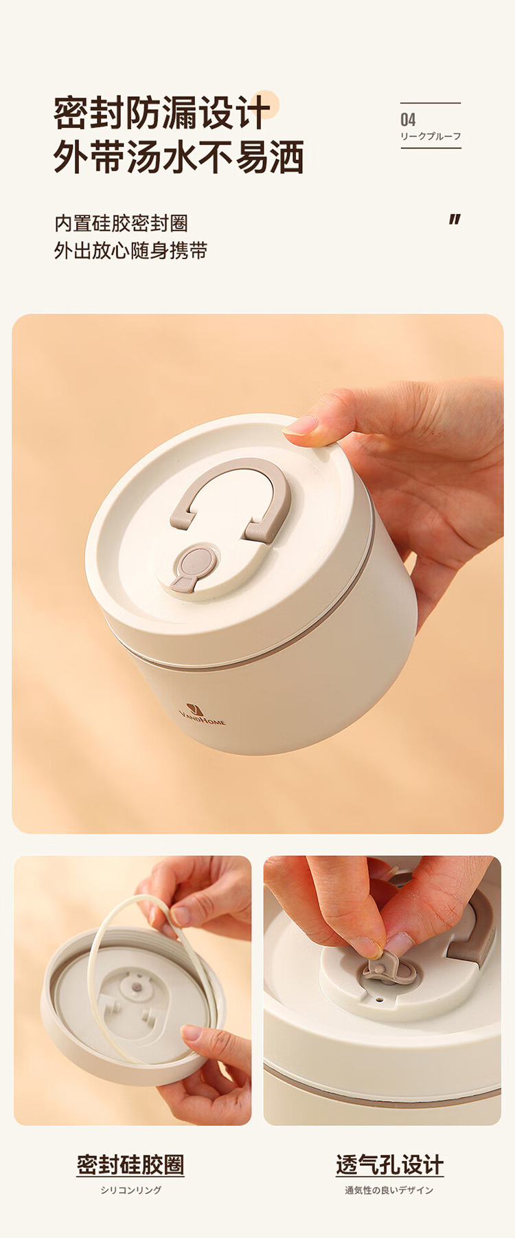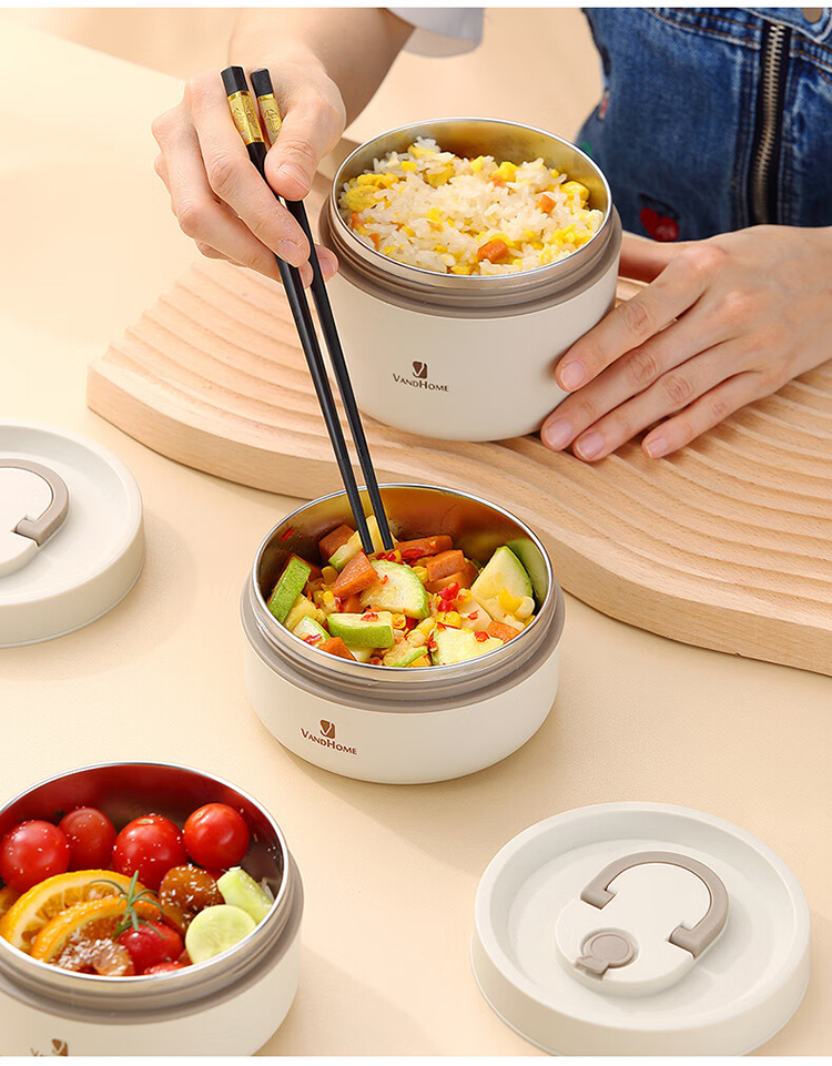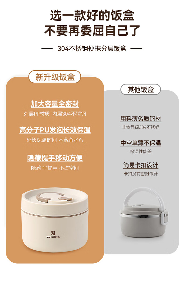 商品名称:沃德百惠(WORTHBUY) G20547-YC2 饭盒400ml*2,600ml*2,保温袋*1 手提不锈钢分格饭盒 米色(单位:套)