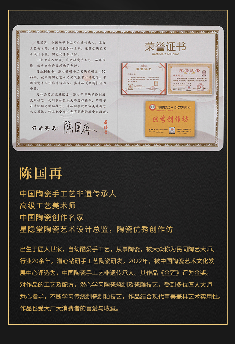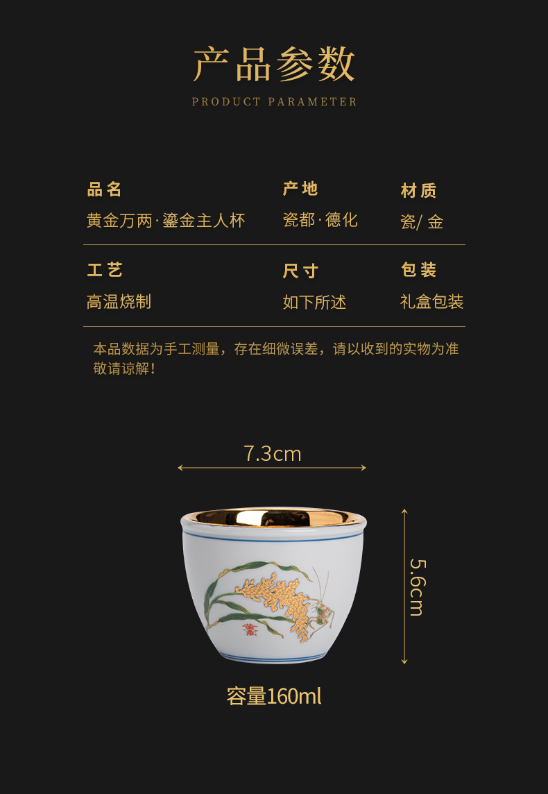 商品名称:苏氏陶瓷(SUSHI CERAMICS)J0848黄金万两杯内部鎏金非遗传承人陈国再作品(单位:个) 白色