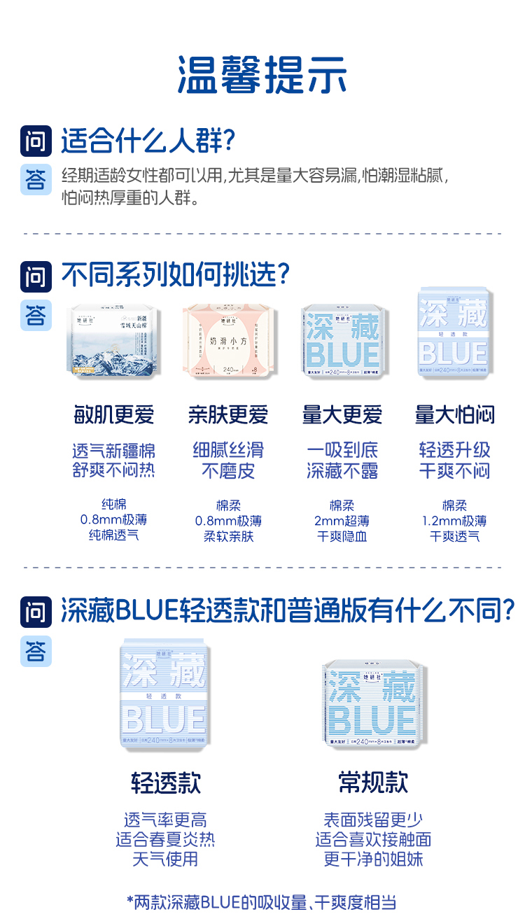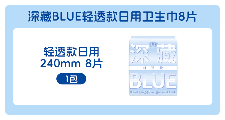 商品名称:她研社(Herlab )深藏blue轻透款卫生巾 量多日用240mm8片 超薄瞬吸透气姨妈巾(包) 蓝色