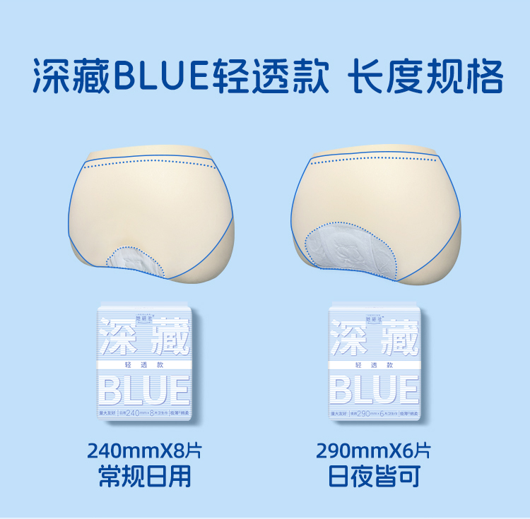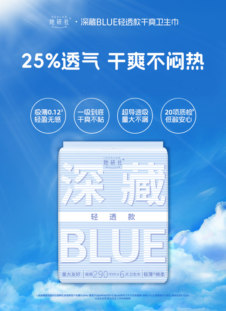 商品名称:她研社(Herlab )深藏blue轻透款卫生巾 量多日用/夜用290mm6片 透气姨妈巾(包) 蓝色