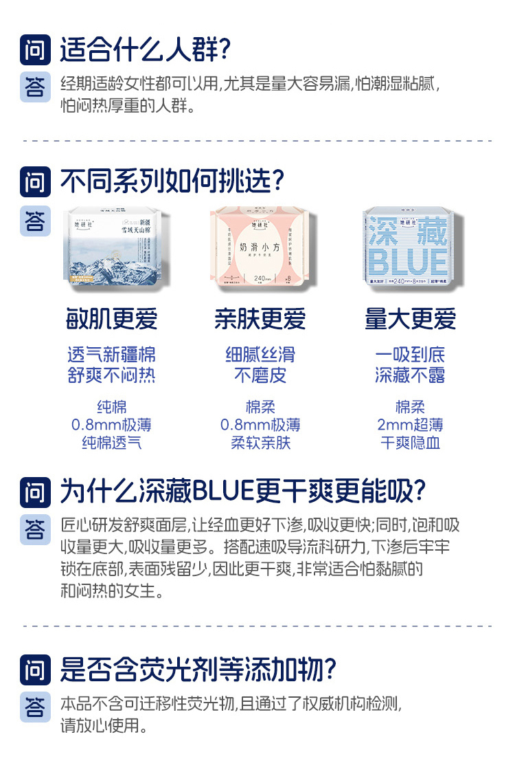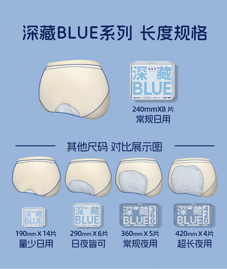 商品名称:她研社(Herlab )深藏blue卫生巾 量多日用/夜用290mm6片 透气姨妈巾(包) 蓝色