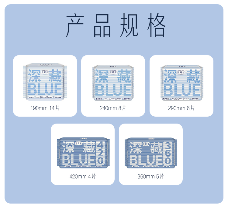 商品名称:她研社(Herlab )深藏blue卫生巾 超长夜用360mm5片 超薄加大尾扇安睡姨妈(包) 蓝色
