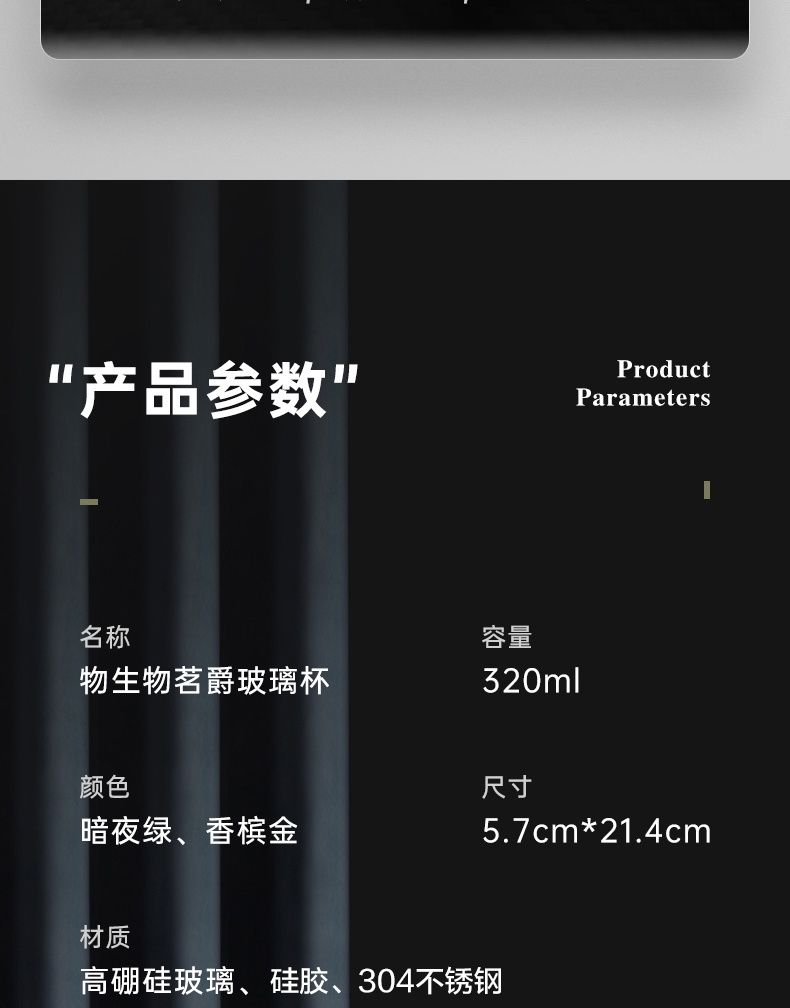 商品名称:物生物茗爵玻璃杯320ML 单位:个 暗夜绿