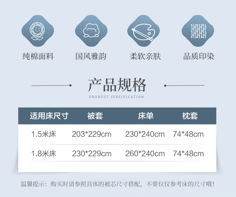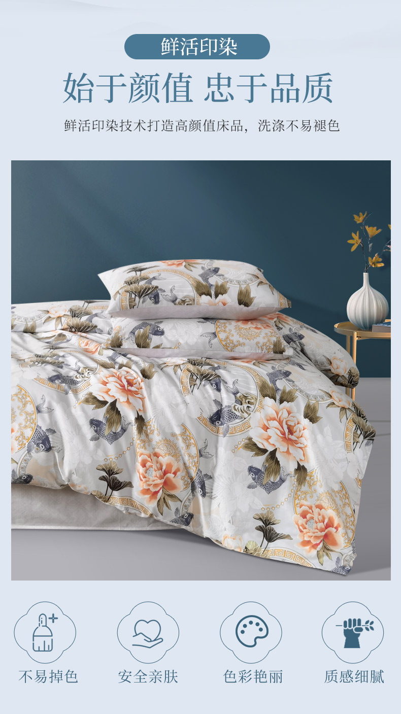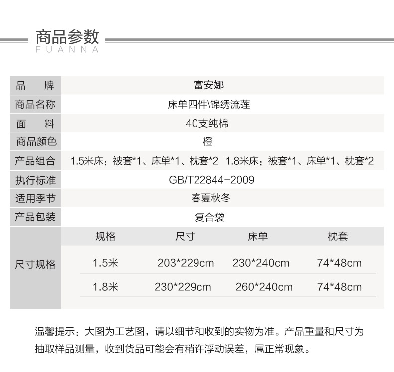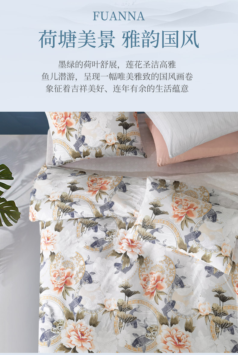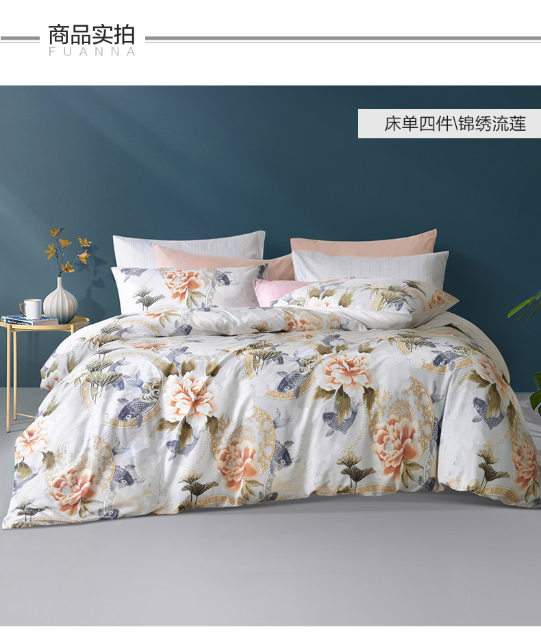 商品名称:富安娜 四件套纯棉 全棉印花床单被套-锦绣流莲 1米5床 203*229cm(单位:套) 混色
