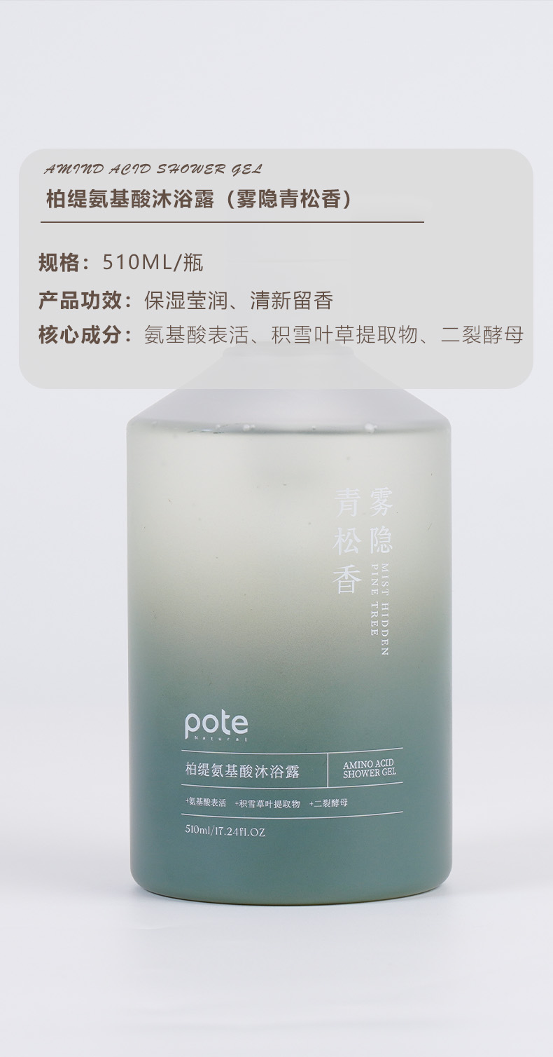 商品名称:柏缇氨基酸沐浴露(雾隐青松香)510ml(单位:瓶) 军绿色