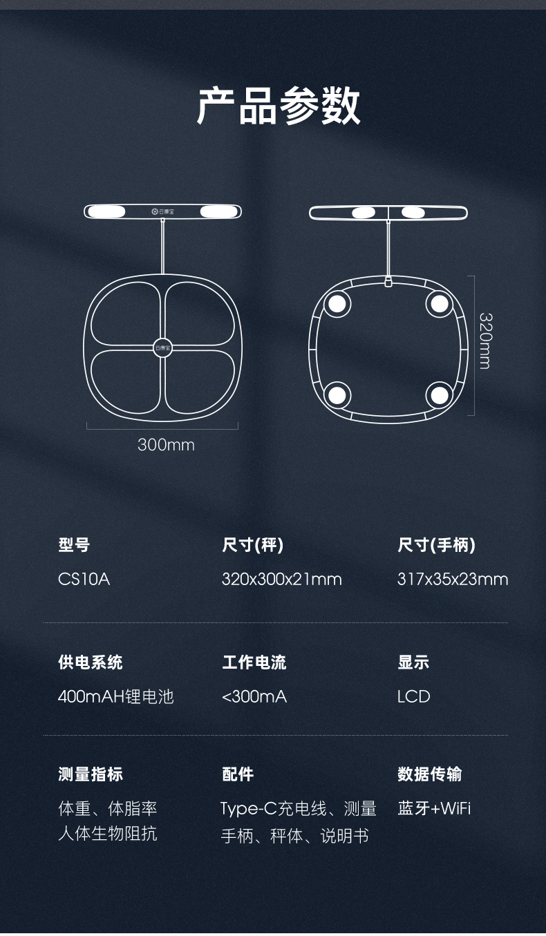 商品名称:云康宝CS10A专业八电极体脂秤(单位:台) 白色