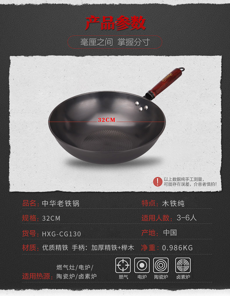 商品名称:火象 中华老铁锅HXG-CG130 曜石黑