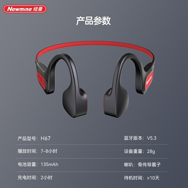 商品名称:纽曼H67骨传导蓝牙耳机黑红色(单位:个) 曜石黑