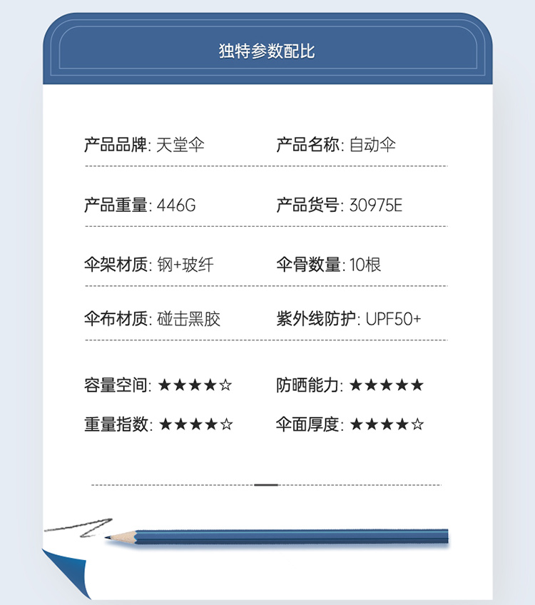 商品名称:天堂 30975E 10骨 全自动晴雨伞三折 黛蓝(单位:把)