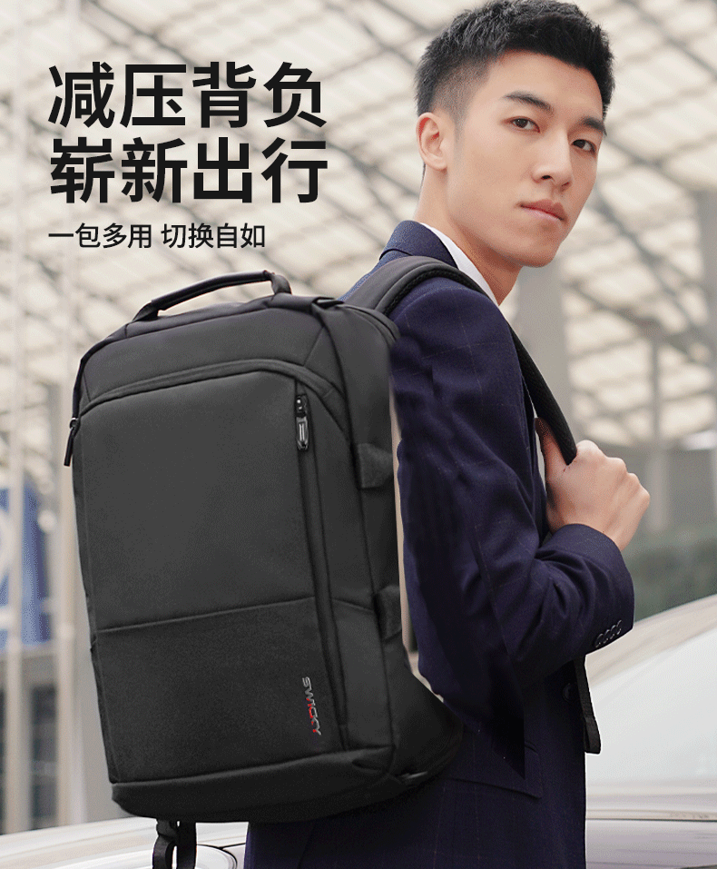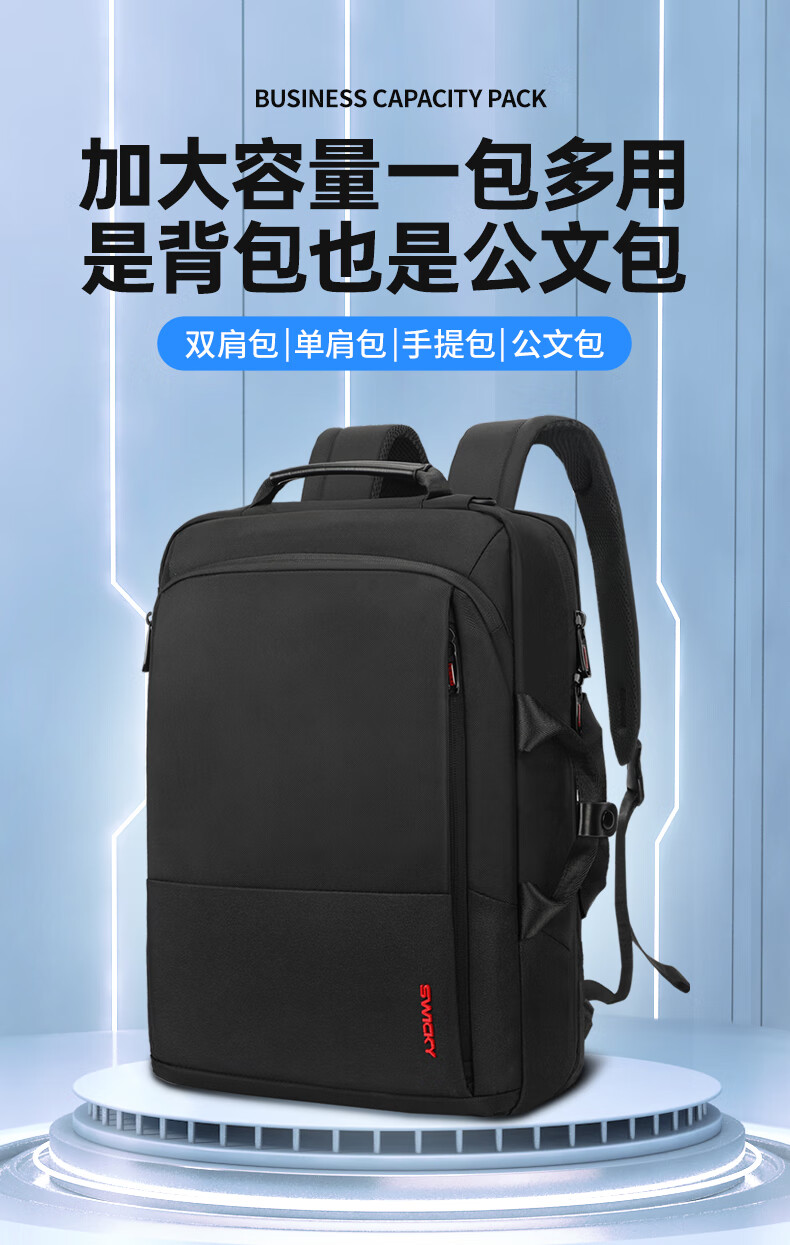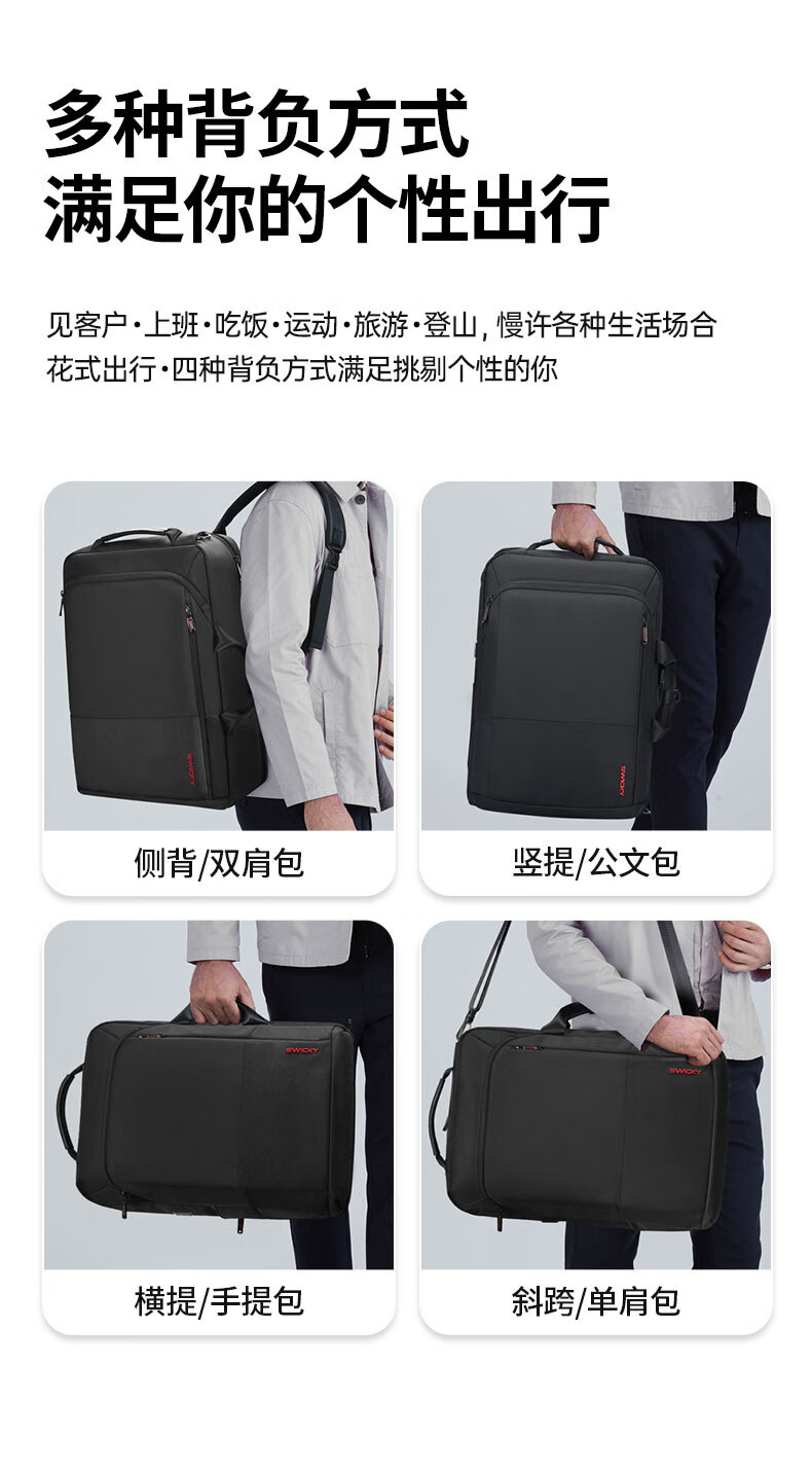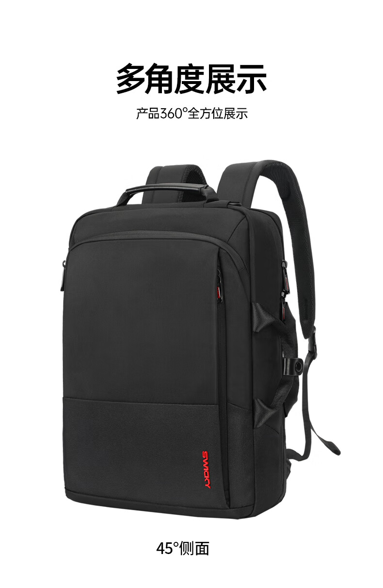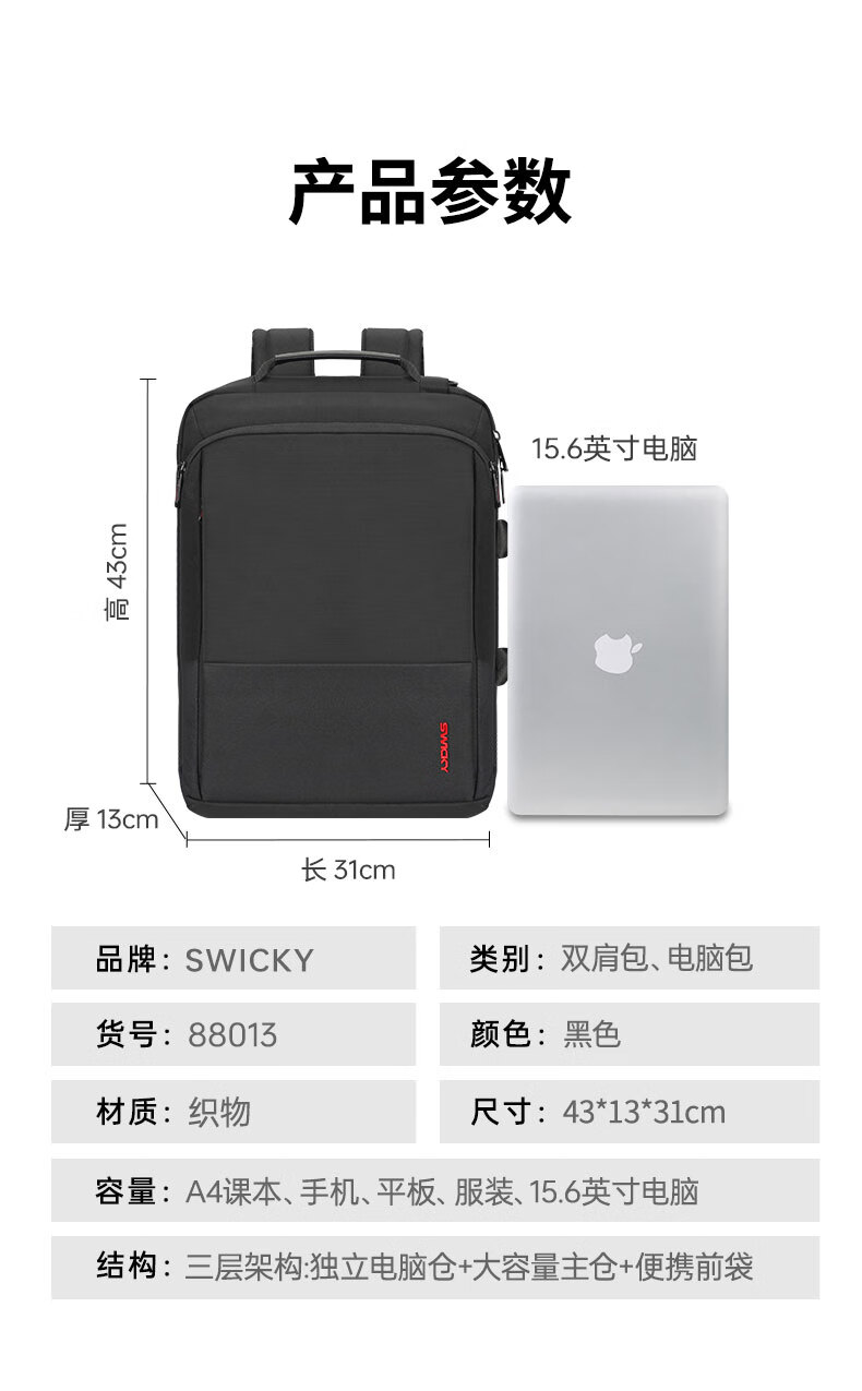 商品名称:SWICKY瑞驰双肩包男士15.6英寸多功能公文包商务大容量背包 88013升级版(单位:个) 黑色