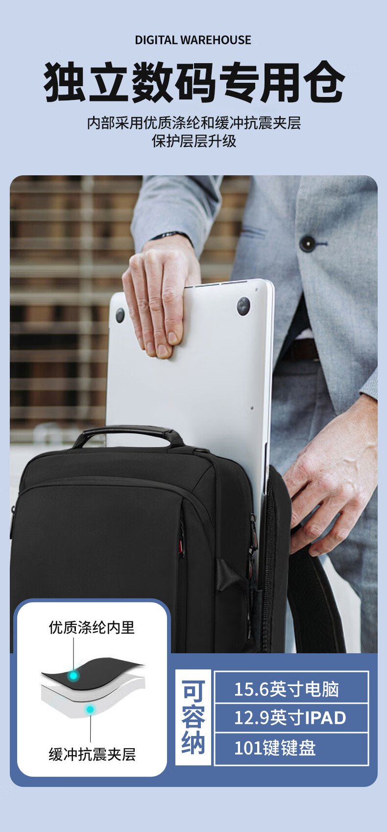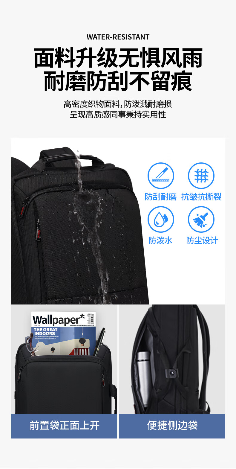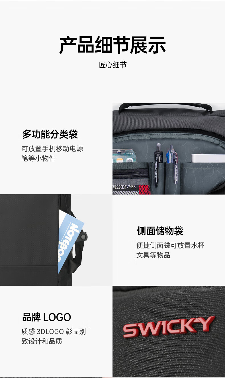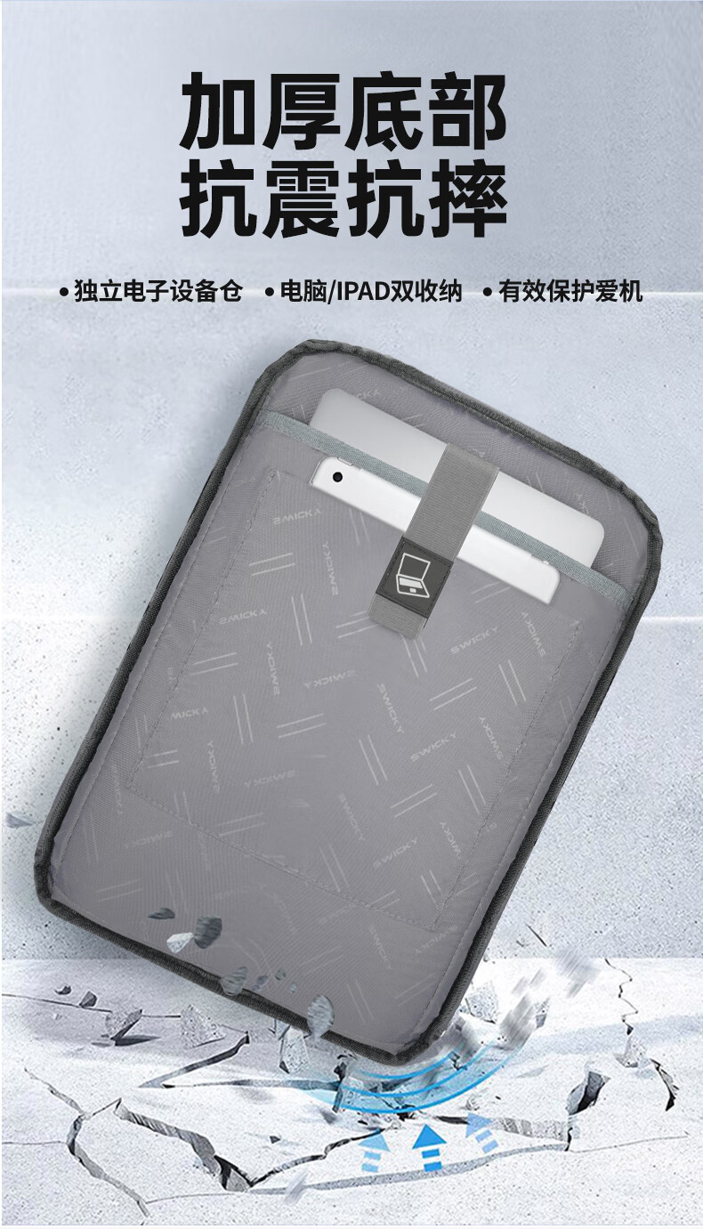商品名称:SWICKY瑞驰双肩包男士15.6英寸多功能公文包商务大容量背包 88013升级版(单位:个) 黑色