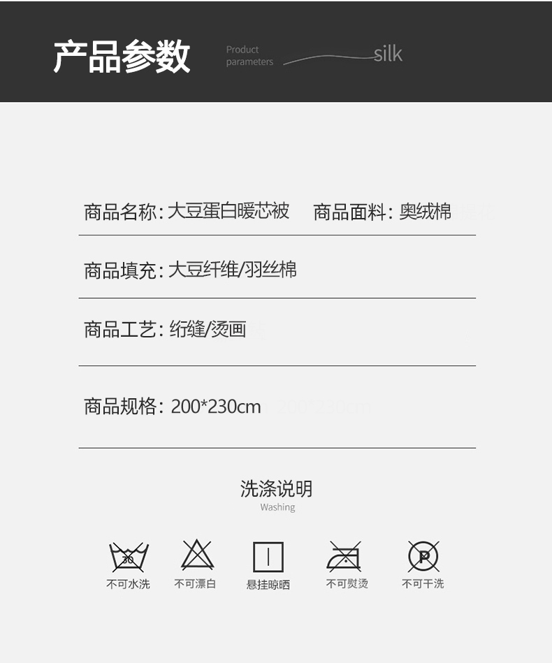 商品名称:保罗彼得PL-D24604大豆蛋白暖芯被200*230cm(单位:件) 混色