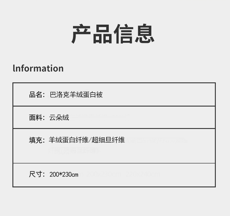 商品名称:保罗彼得PL-D24612巴洛克羊绒蛋白被200*230cm(单位:件) 灰色