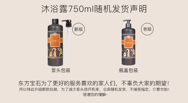 商品名称:东方宝石(Tesori D’oriente)水莲花香氛沐浴露750ml单位:瓶 棕色两瓶