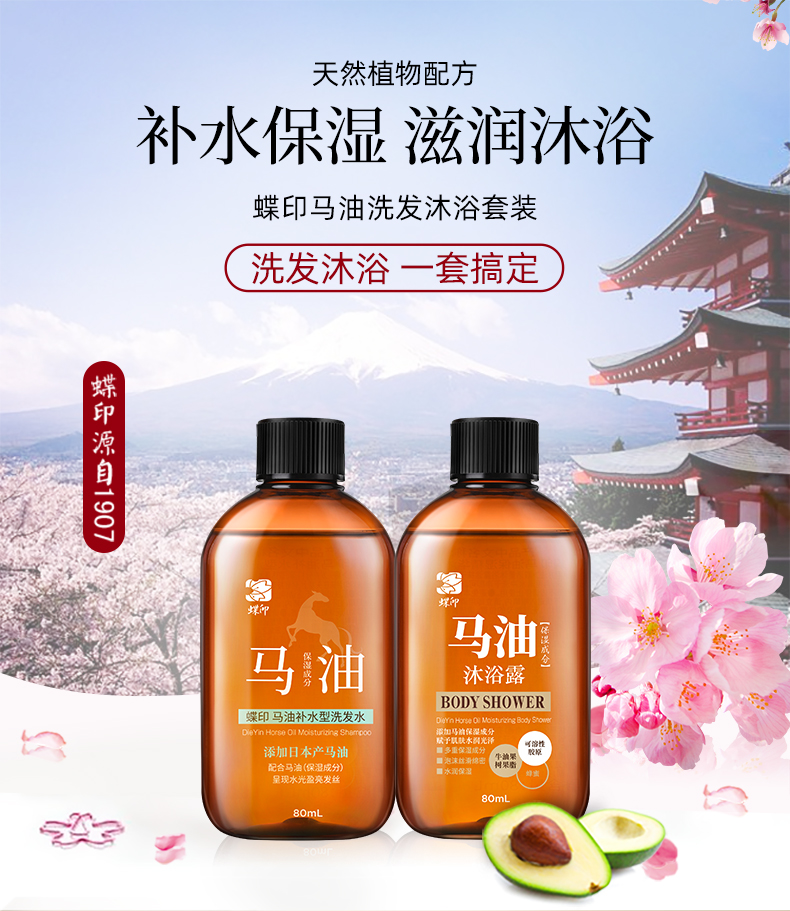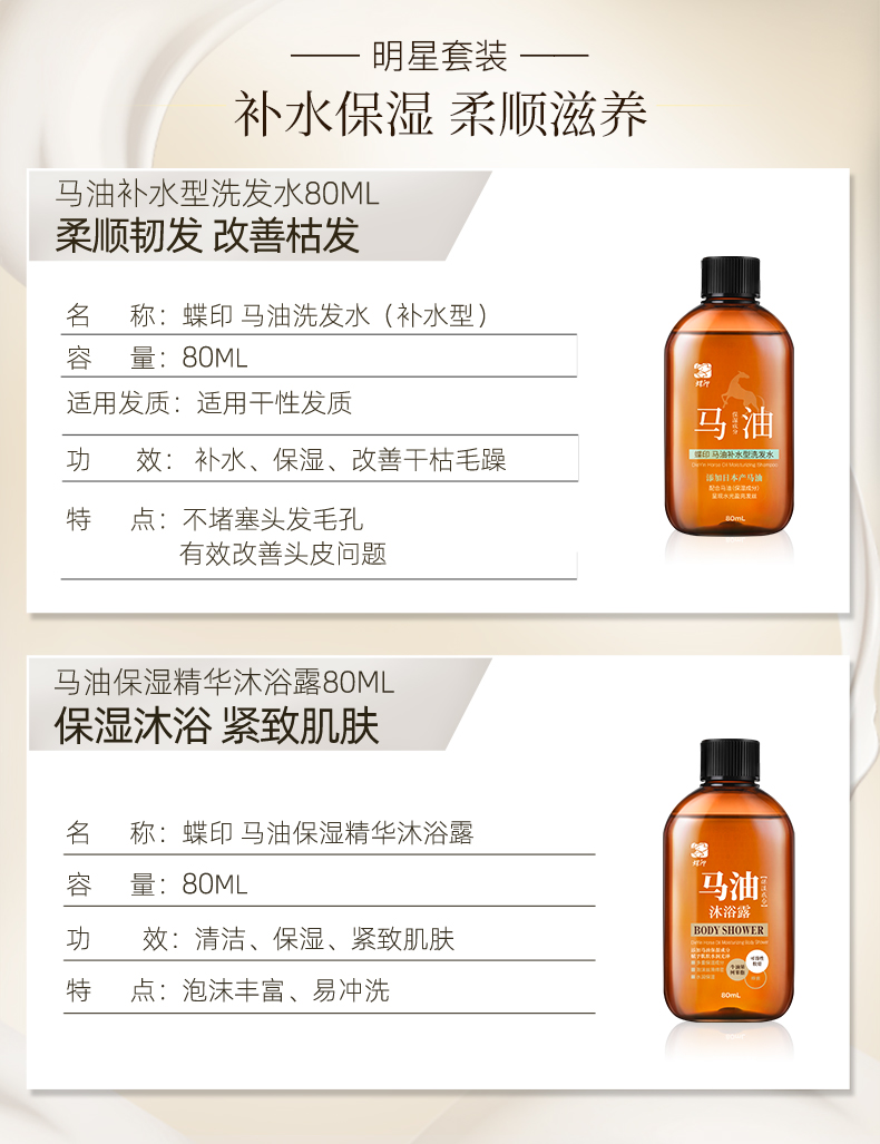 商品名称:蝶印 马油洗沐旅行套装(洗发水80mL+沐浴露80ml)(单位:套) 炫橙色