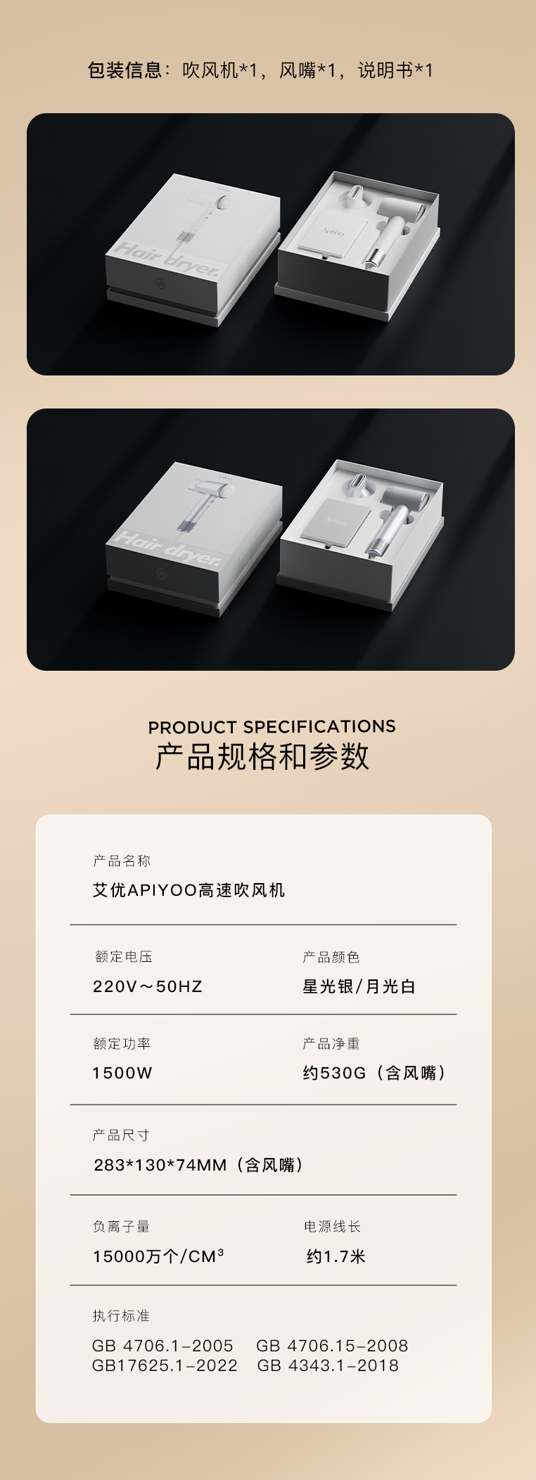 商品名称:艾优(ApiYoo)高速吹风机PF6(单位:个) 星光银