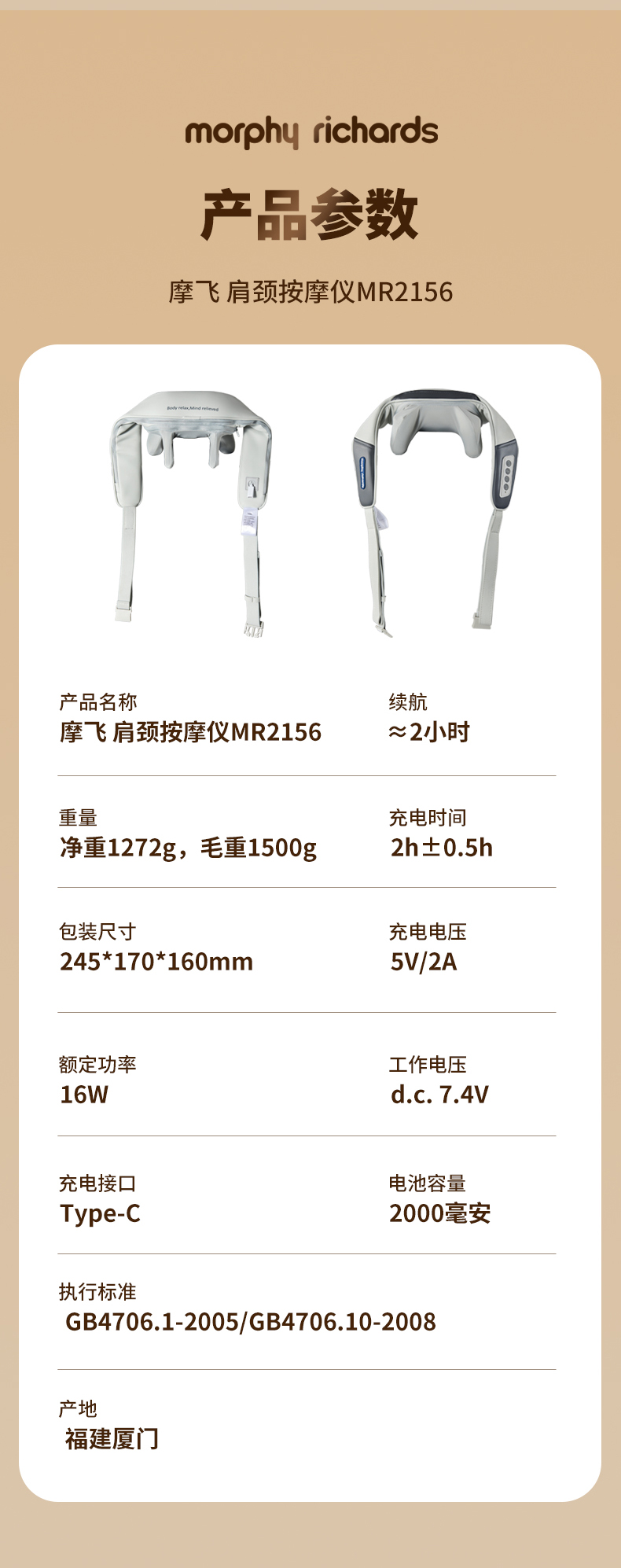 商品名称:摩飞 肩颈按摩仪MR2156(台)