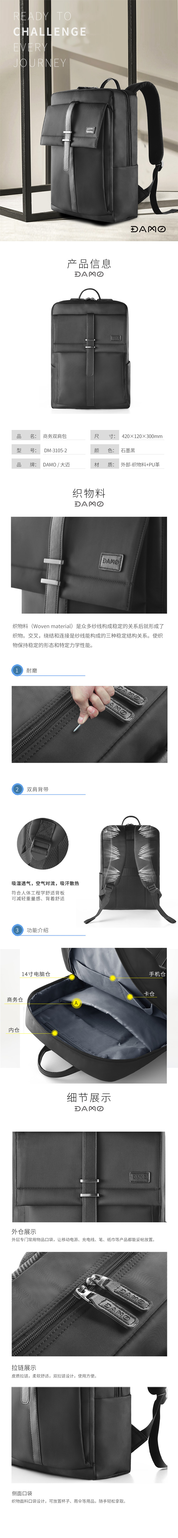 商品名称:大迈(DM)双肩包DM-3105-2(单位:个) 曜石黑