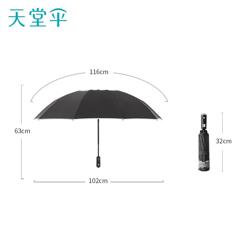 商品名称:天堂 31140E 三折10骨 全自动折叠商务雨伞 云炭黑(单位:把)