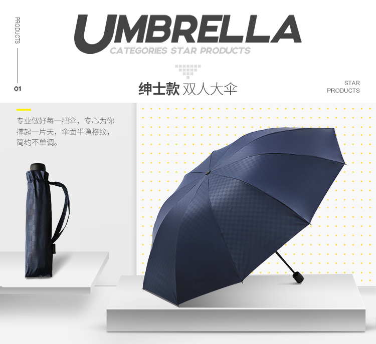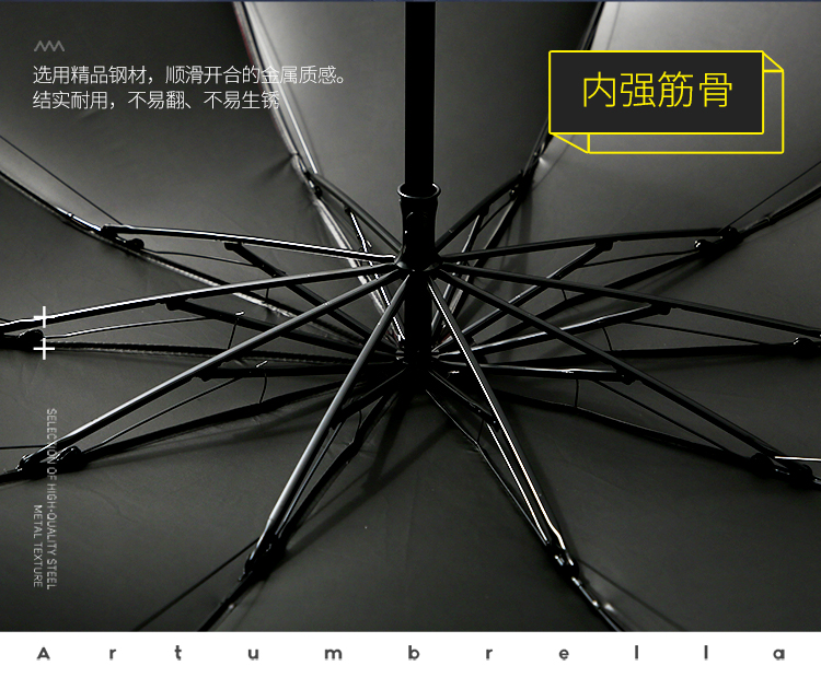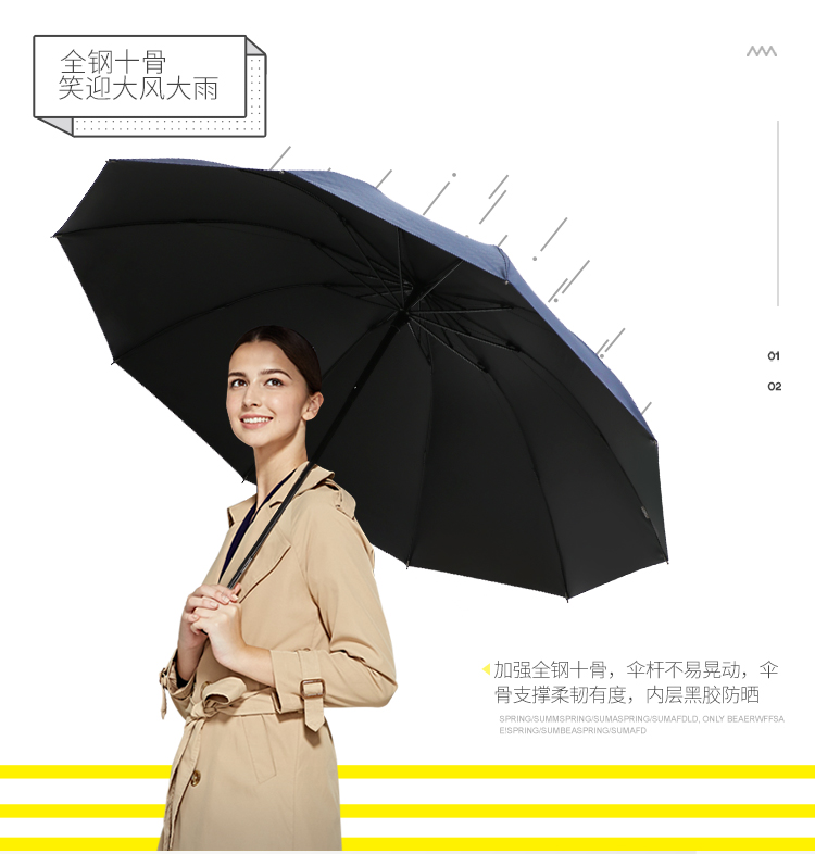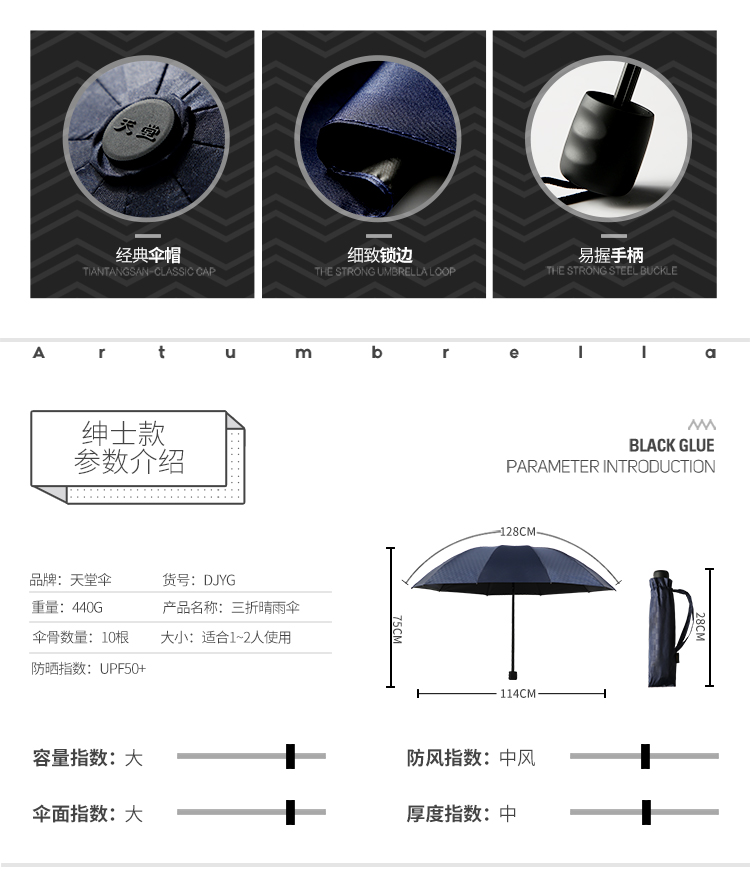 商品名称:天堂【31125E独具一格】 双人三折 10骨双人超大号/把 曜石黑