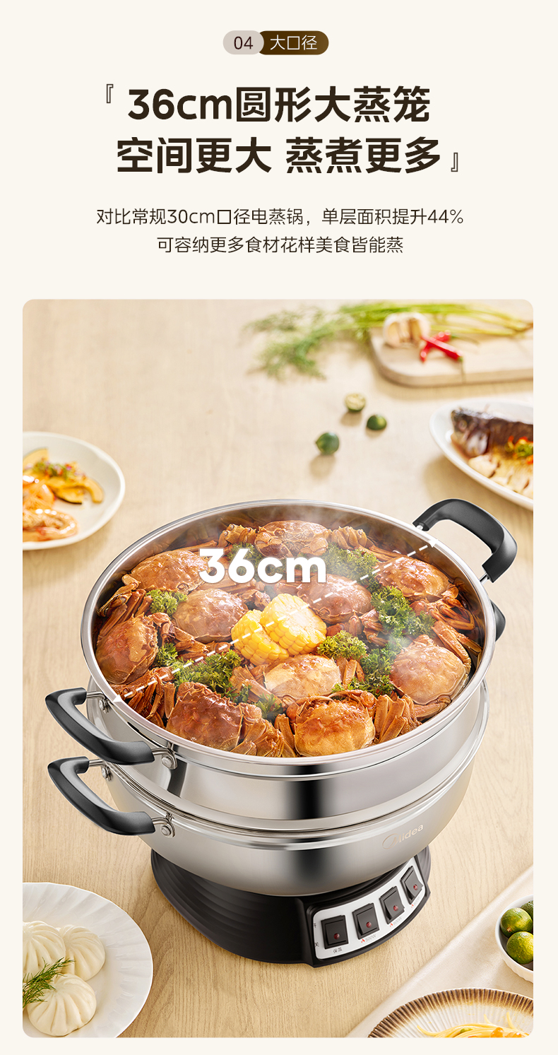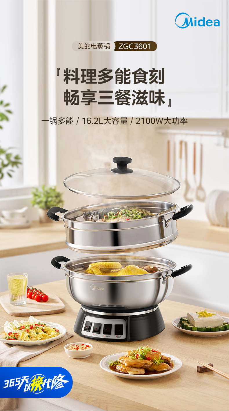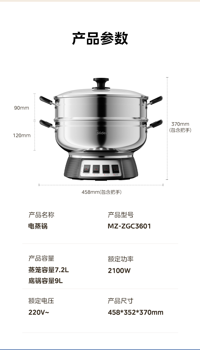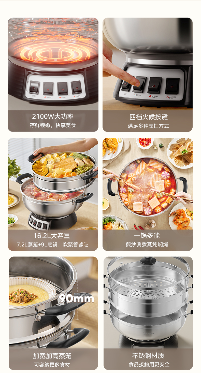 商品名称:美的(Midea)多用途锅电蒸锅16.2升多功能锅 MZ-ZGC3601(单位:台) 不锈钢色