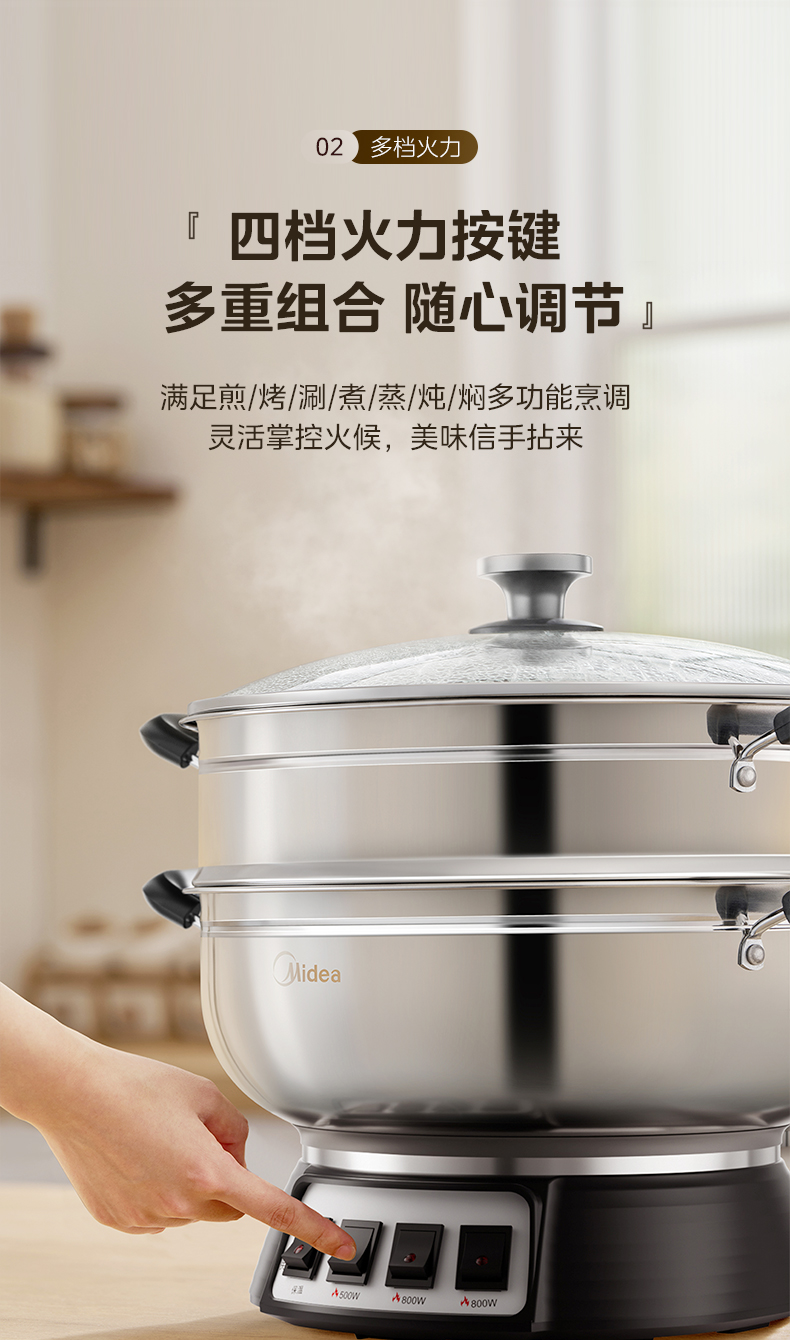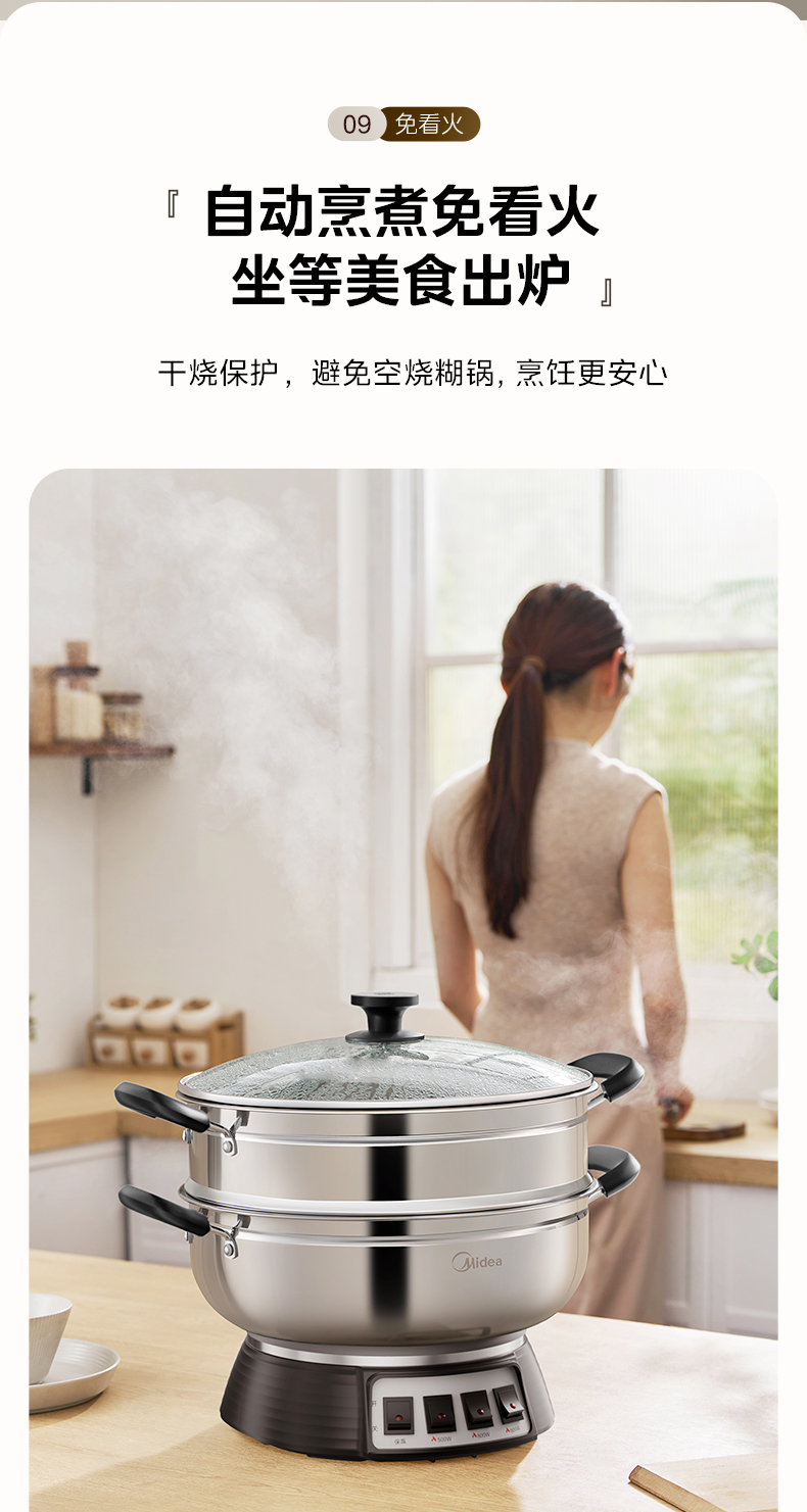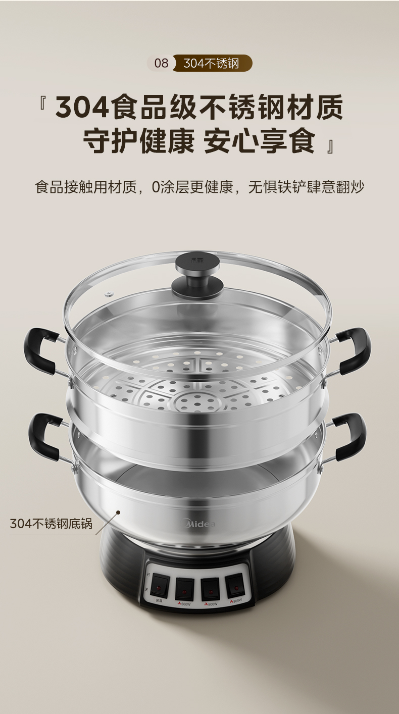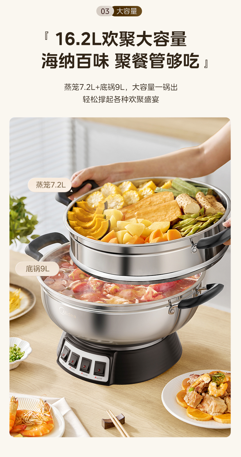 商品名称:美的(Midea)多用途锅电蒸锅16.2升多功能锅 MZ-ZGC3601(单位:台) 不锈钢色