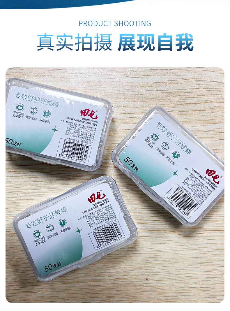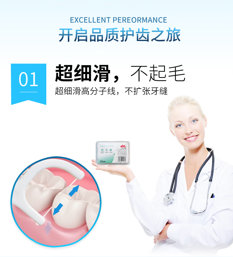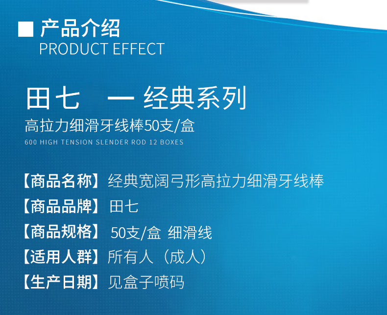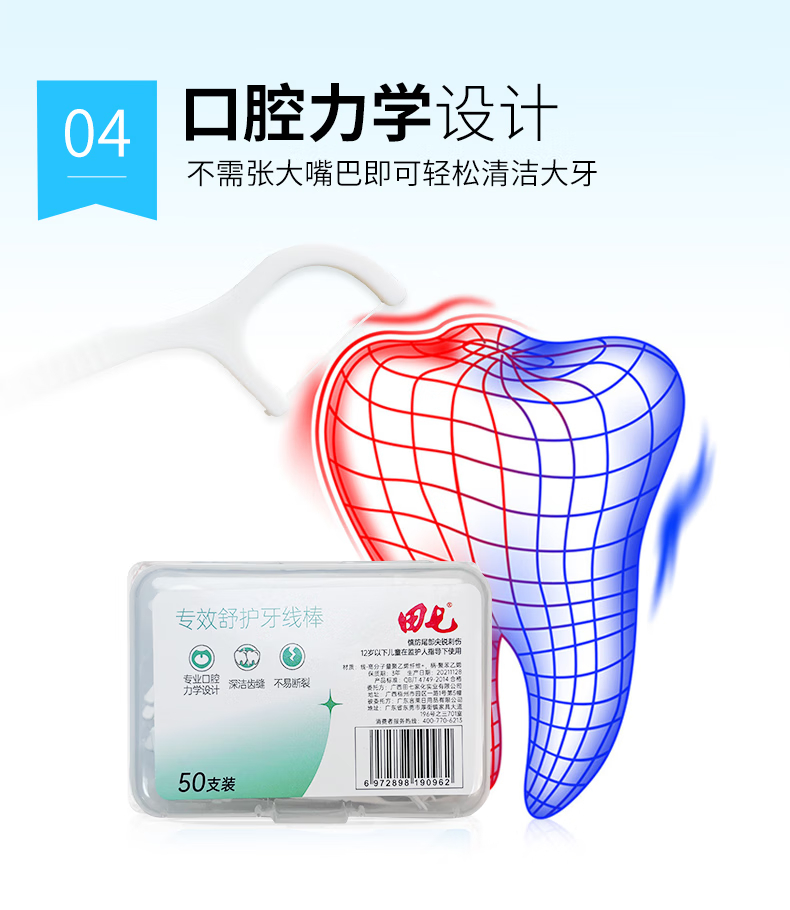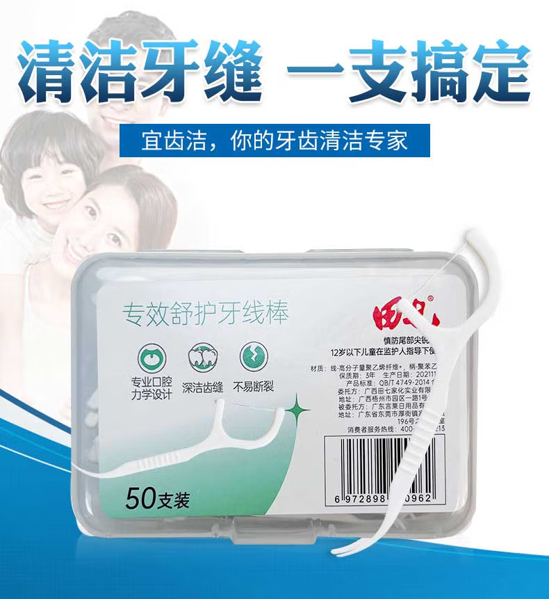 商品名称:田七专效舒护牙线棒50支(盒装) 单位:盒 白色