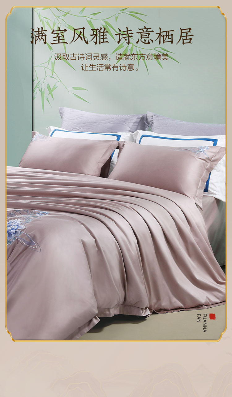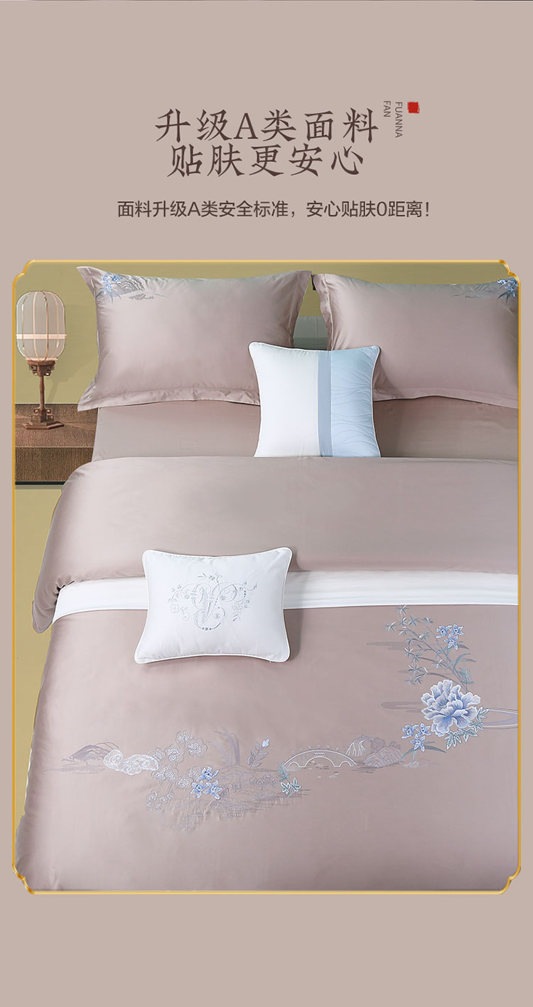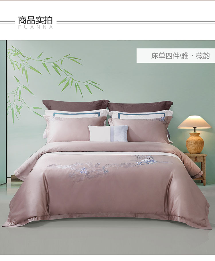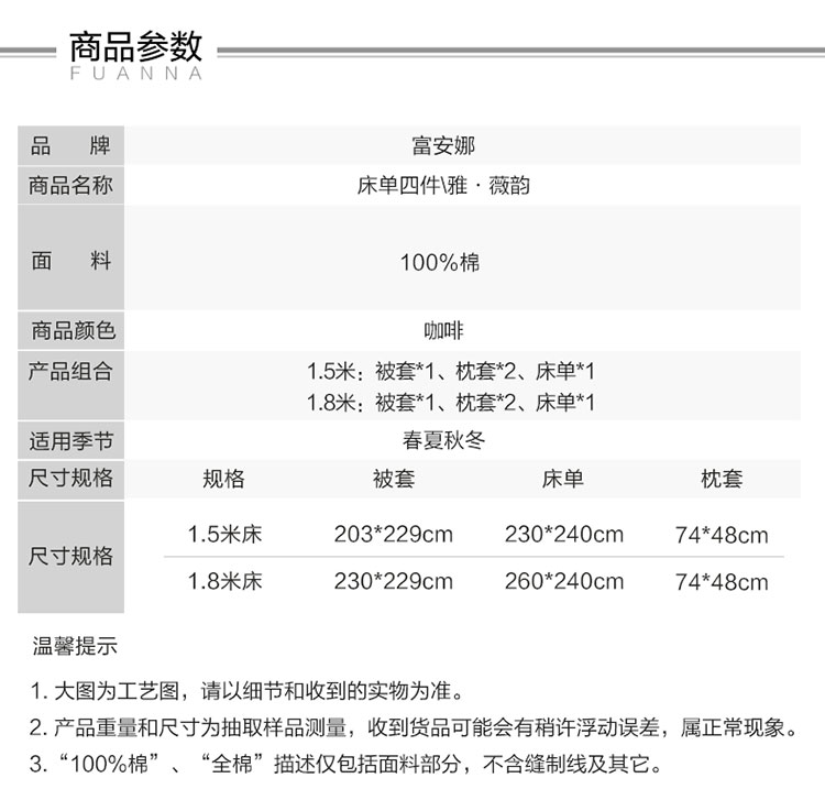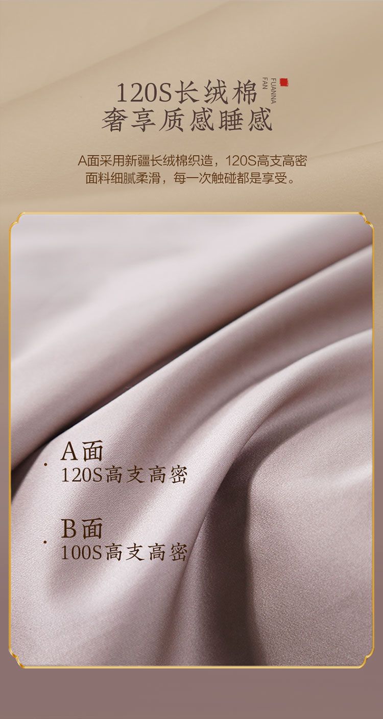 商品名称:富安娜家纺高档床上四件套 120s双股长绒棉A类贡缎床单四件套230*229cm\雅﹒薇韵\D(单位:套) 咖啡色